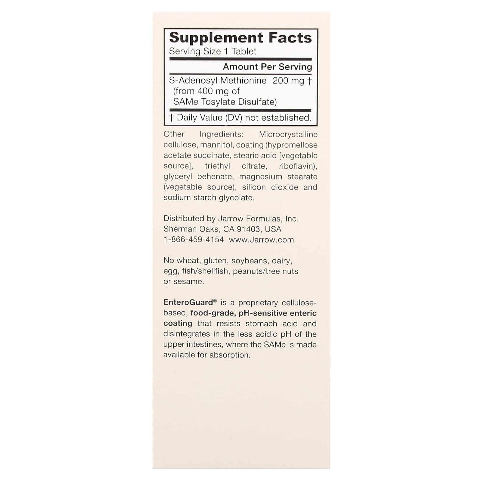 *Some information on the Jarrow Formulas, SAMe 200, 200 mg, 60 Tabletslabel may be missing, or it may have been written incorrectly. We work hard to keep the information accurate & up to date. Please let us know if you discover any errors.