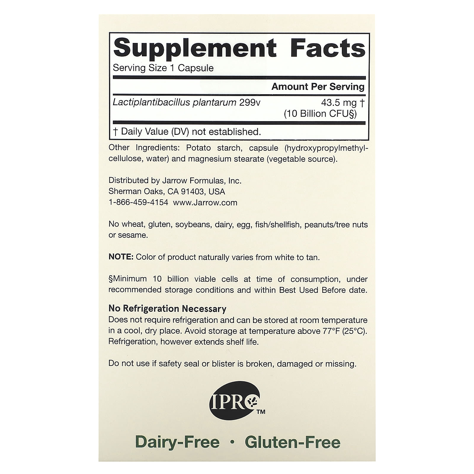 *Some information on the Jarrow Formulas, Vegan Ideal Bowel Support, 10 Billion CFU, 30 Veggie Capsuleslabel may be missing, or it may have been written incorrectly. We work hard to keep the information accurate & up to date. Please let us know if you discover any errors.