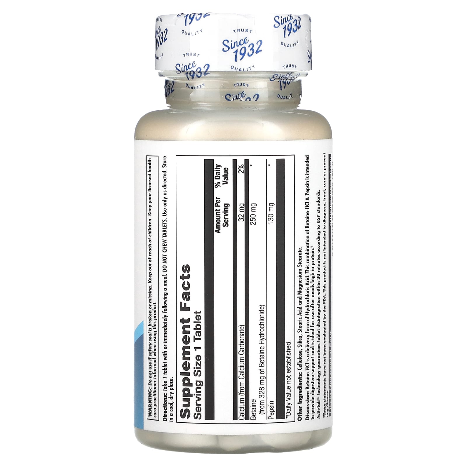*Some information on the KAL, Betaine HCl+, 250 mg, 100 Tabletslabel may be missing, or it may have been written incorrectly. We work hard to keep the information accurate & up to date. Please let us know if you discover any errors.