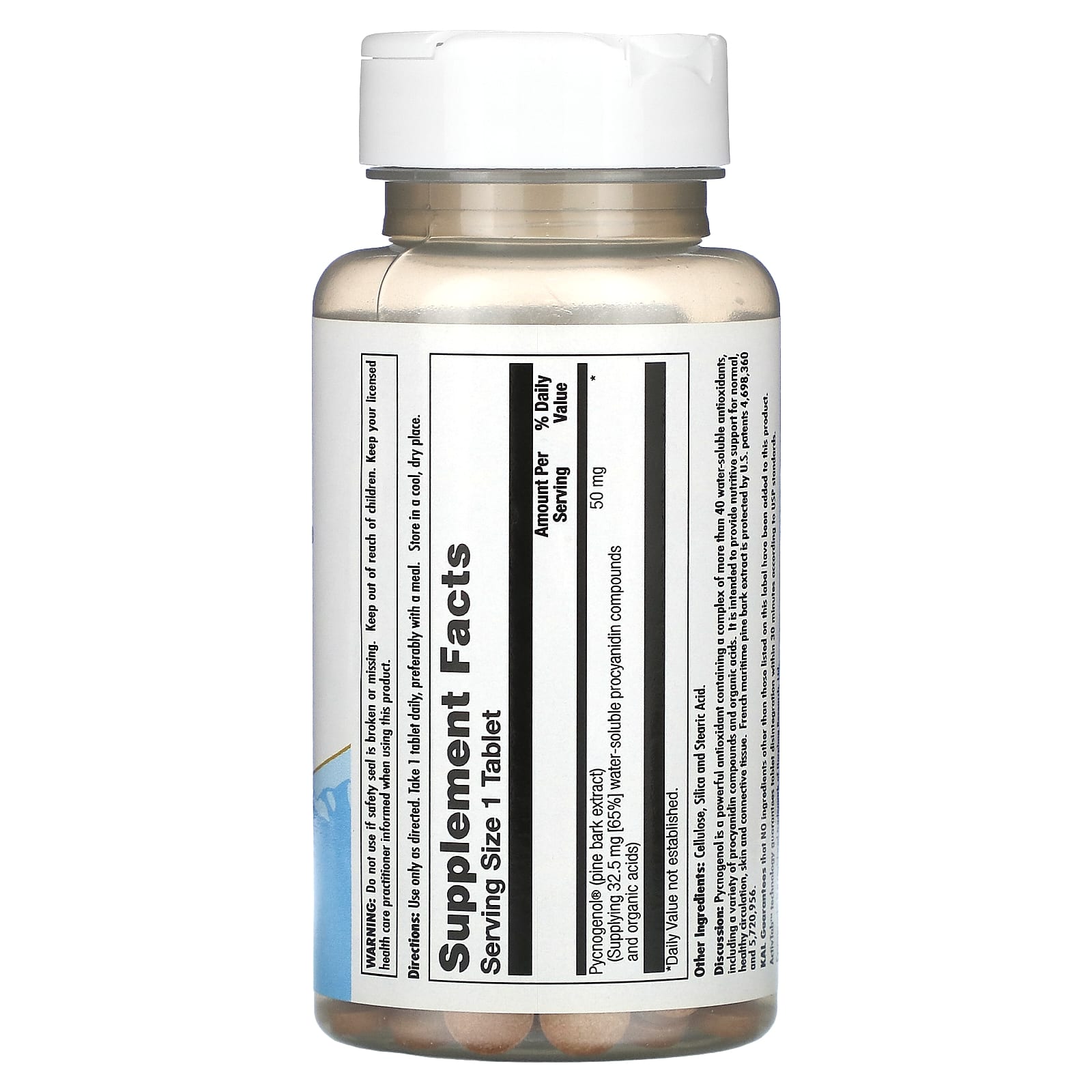 *Some information on the KAL, Pycnogenol, 50 mg, 60 Tabletslabel may be missing, or it may have been written incorrectly. We work hard to keep the information accurate & up to date. Please let us know if you discover any errors.