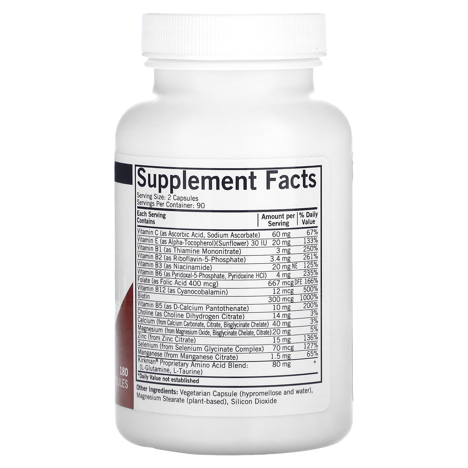 *Some information on the Kirkman Labs, Everyday Multivitamin without A & D, 180 Capsuleslabel may be missing, or it may have been written incorrectly. We work hard to keep the information accurate & up to date. Please let us know if you discover any errors.