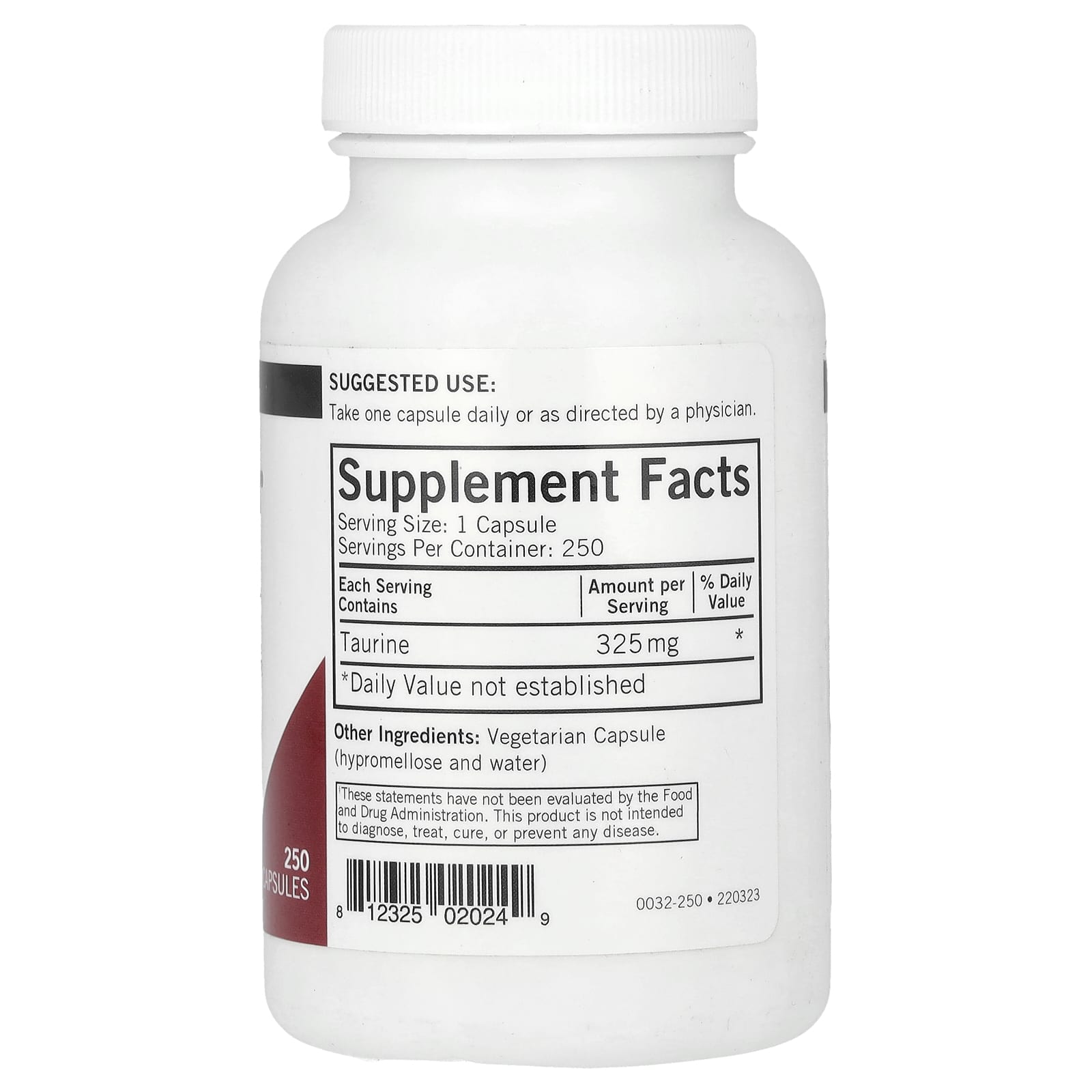 *Some information on the Kirkman Labs, Taurine, 325 mg, 250 Capsuleslabel may be missing, or it may have been written incorrectly. We work hard to keep the information accurate & up to date. Please let us know if you discover any errors.