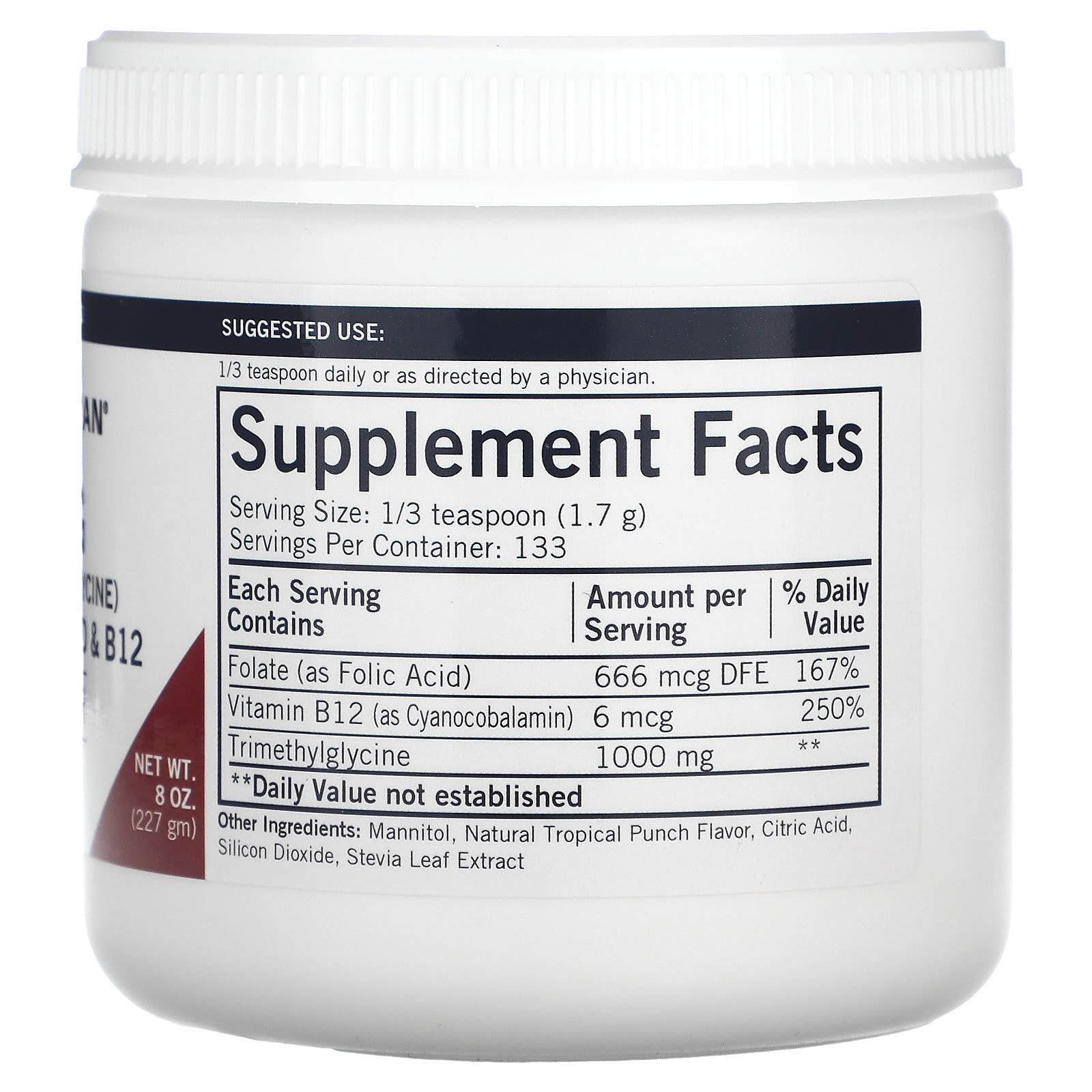 *Some information on the Kirkman Labs, TMG (Trimethylglycine) with Folic Acid & B12 Powder, 8 oz (227 g)label may be missing, or it may have been written incorrectly. We work hard to keep the information accurate & up to date. Please let us know if you discover any errors.