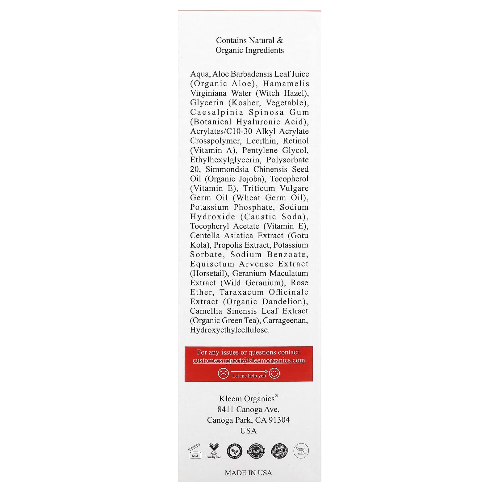*Some information on the Kleem Organics, Retinol Booster, 1 fl oz (30 ml)label may be missing, or it may have been written incorrectly. We work hard to keep the information accurate & up to date. Please let us know if you discover any errors.