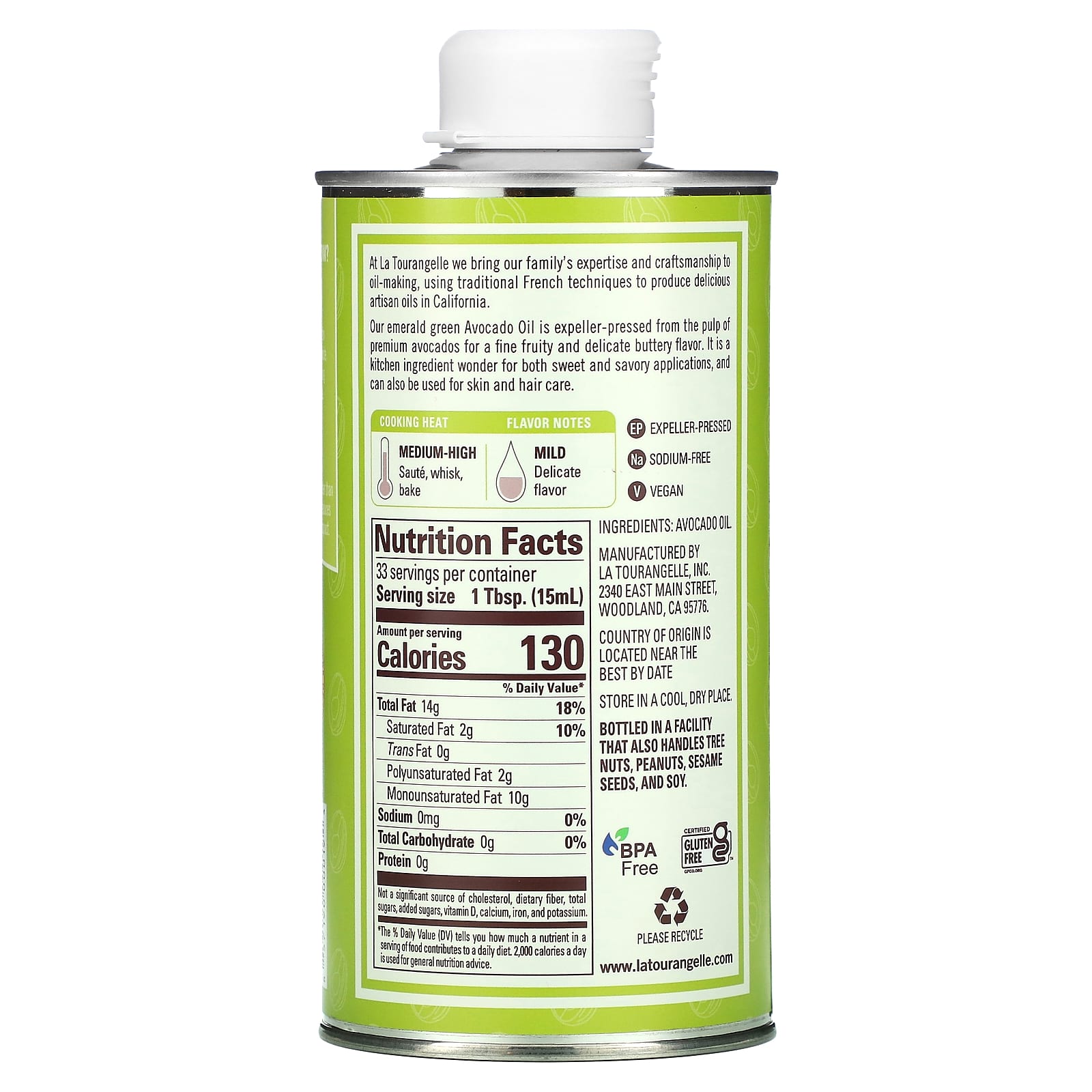 *Some information on the La Tourangelle, Delicate Avocado Oil, 16.9 fl oz (500 ml)label may be missing, or it may have been written incorrectly. We work hard to keep the information accurate & up to date. Please let us know if you discover any errors.