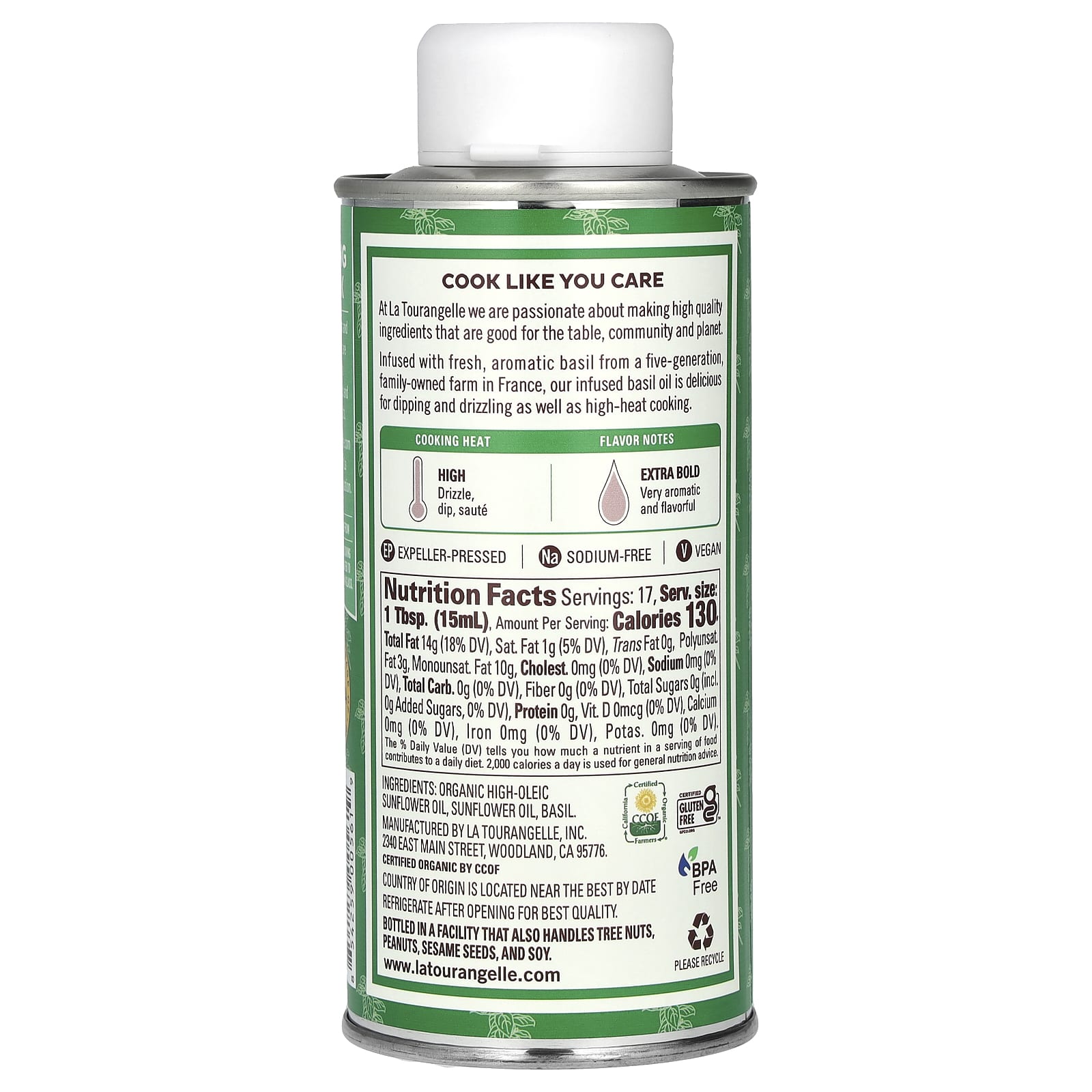 *Some information on the La Tourangelle, Infused Basil Oil, 8.45 fl oz (250 ml)label may be missing, or it may have been written incorrectly. We work hard to keep the information accurate & up to date. Please let us know if you discover any errors.