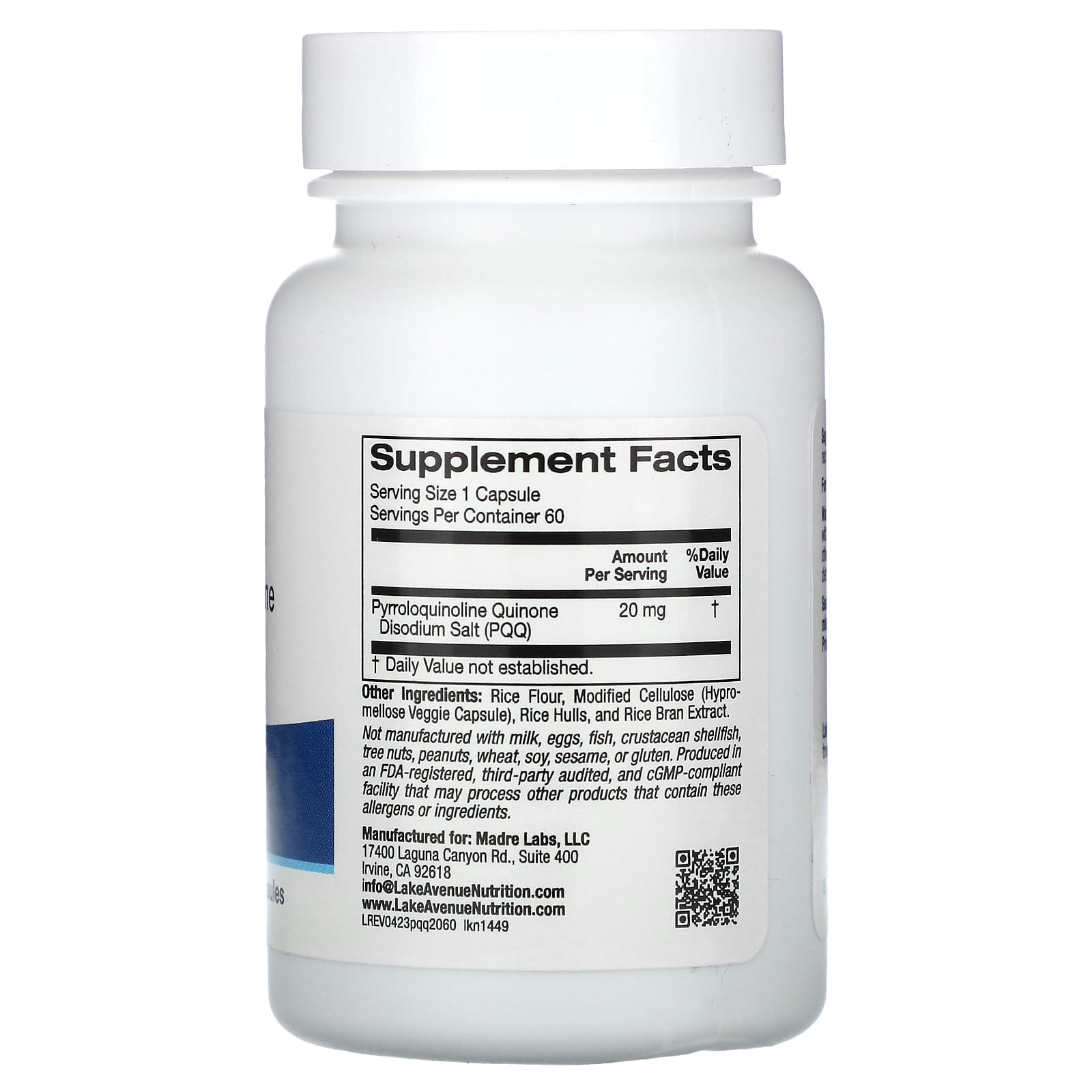 *Some information on the Lake Avenue Nutrition, PQQ, 20 mg, 60 Veggie Capsuleslabel may be missing, or it may have been written incorrectly. We work hard to keep the information accurate & up to date. Please let us know if you discover any errors.