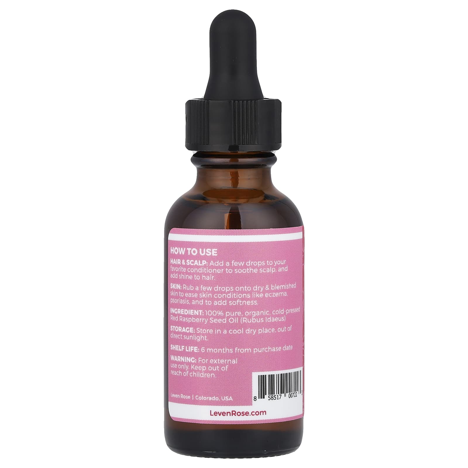 *Some information on the Leven Rose, 100% Pure & Organic, Red Raspberry Seed Oil, 1 fl oz (30 ml)label may be missing, or it may have been written incorrectly. We work hard to keep the information accurate & up to date. Please let us know if you discover any errors.