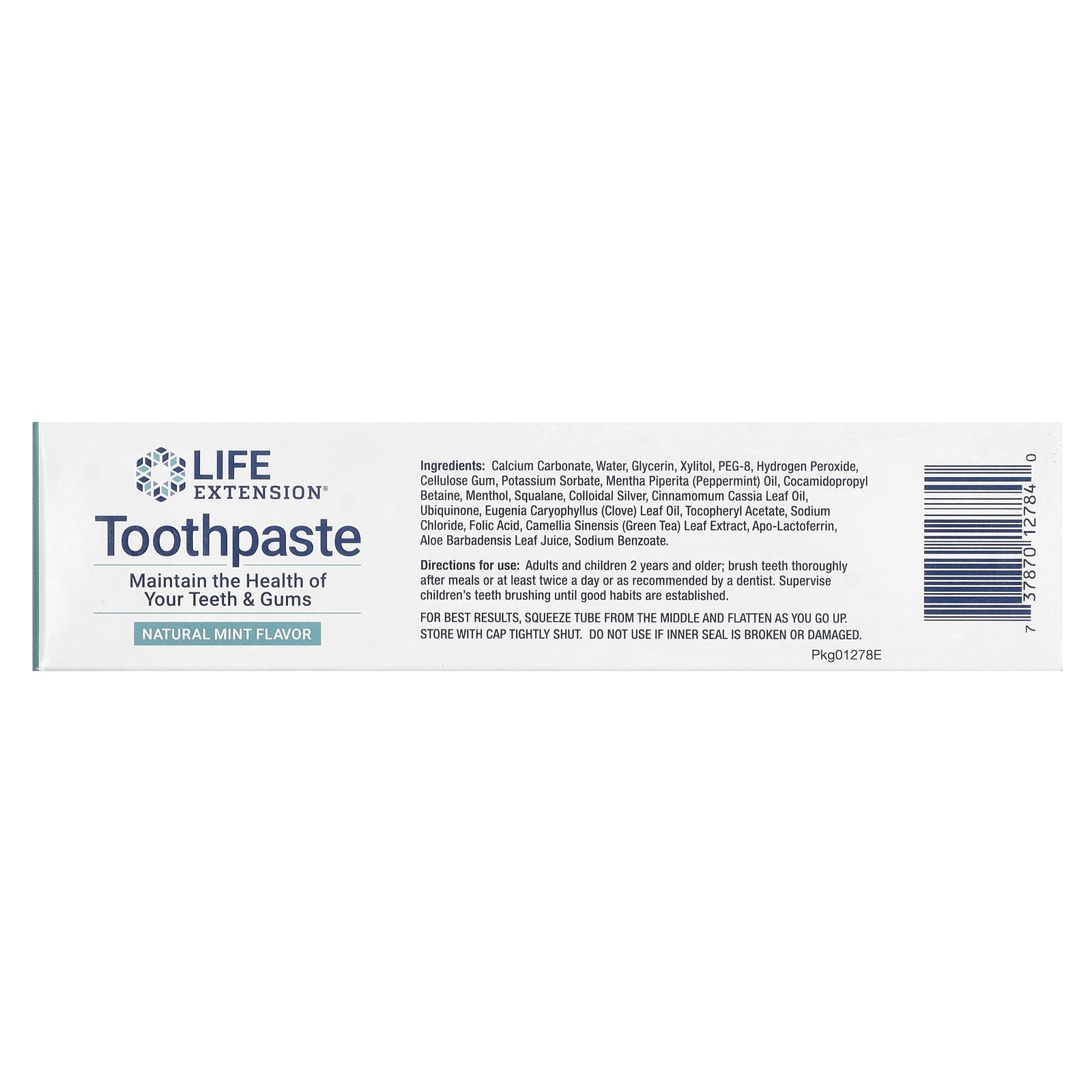 *Some information on the Life Extension, Fluoride-Free Toothpaste, Natural Mint, 4 oz (113.4 g)label may be missing, or it may have been written incorrectly. We work hard to keep the information accurate & up to date. Please let us know if you discover any errors.