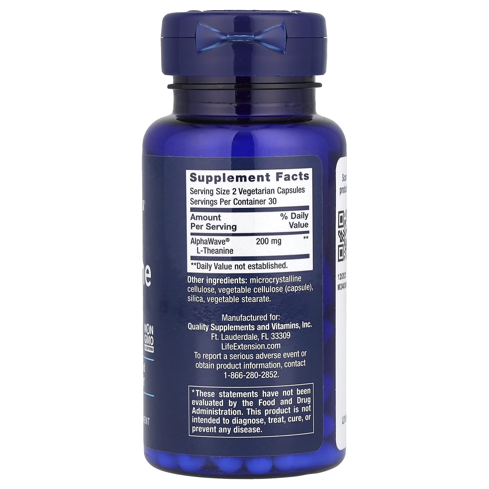 *Some information on the Life Extension, L-Theanine, 60 Vegetarian Capsuleslabel may be missing, or it may have been written incorrectly. We work hard to keep the information accurate & up to date. Please let us know if you discover any errors.