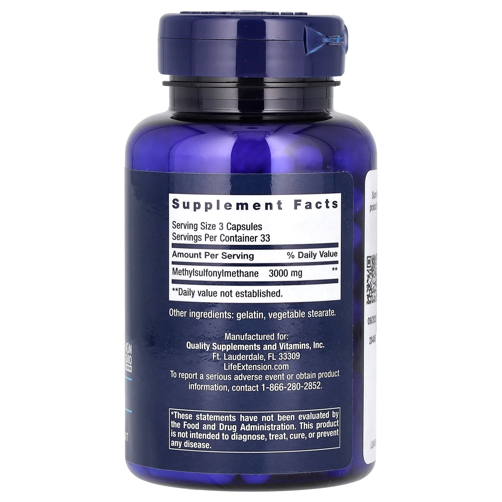 *Some information on the Life Extension, MSM, 3,000 mg, 100 Capsules (1,000 mg per Capsule)label may be missing, or it may have been written incorrectly. We work hard to keep the information accurate & up to date. Please let us know if you discover any errors.