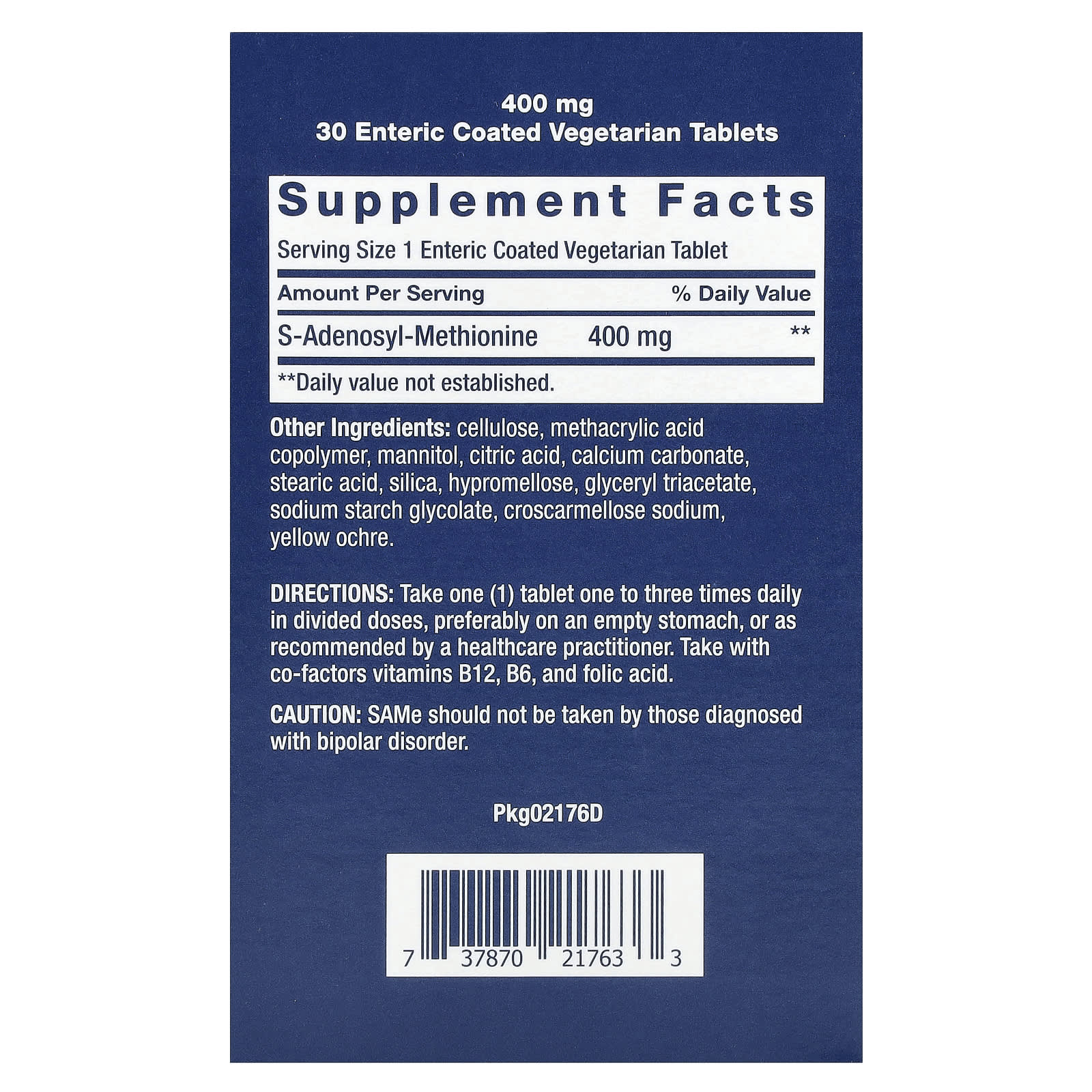 *Some information on the Life Extension, SAMe, S-Adenosyl-Methionine, 400 mg, 30 Enteric Coated Vegetarian Tabletslabel may be missing, or it may have been written incorrectly. We work hard to keep the information accurate & up to date. Please let us know if you discover any errors.