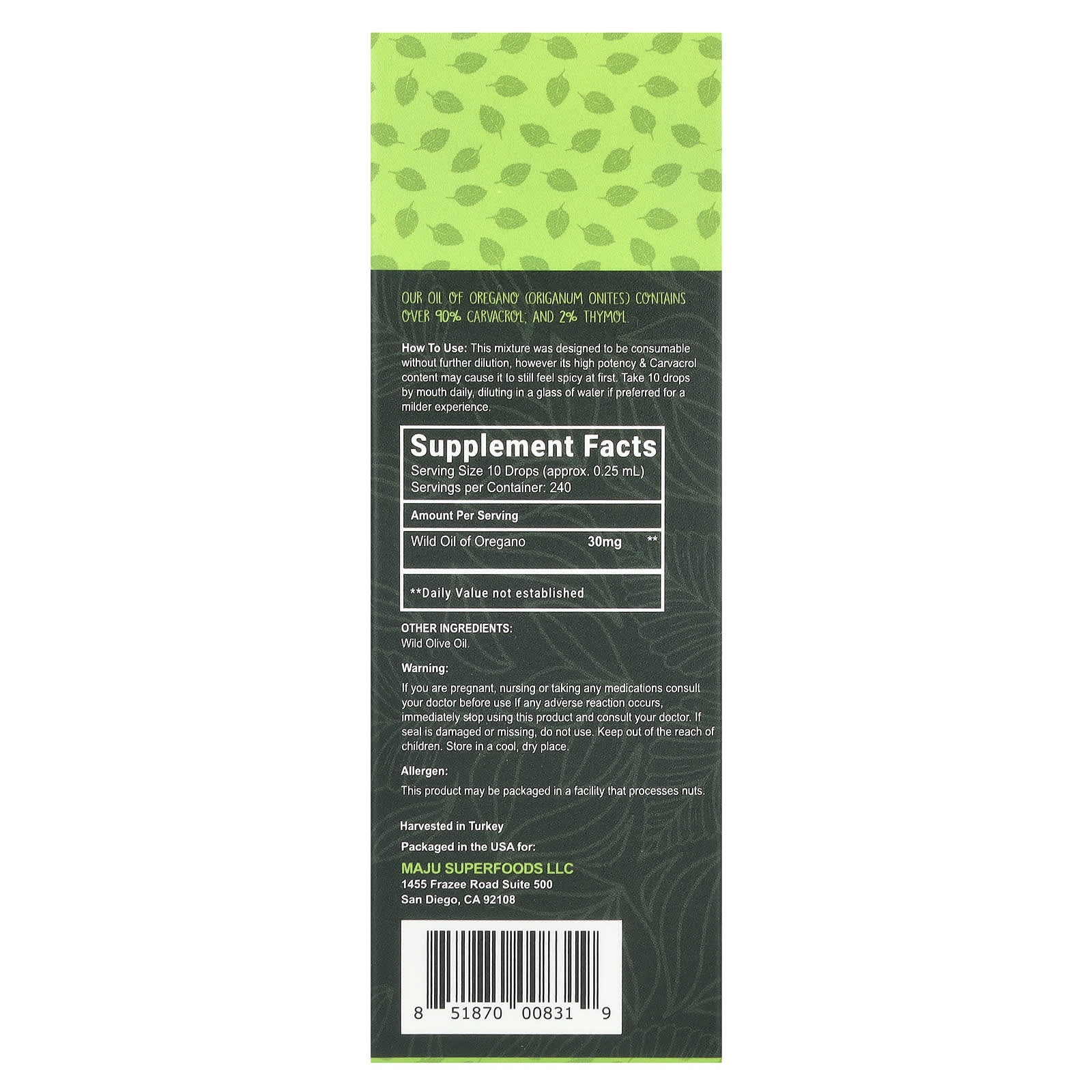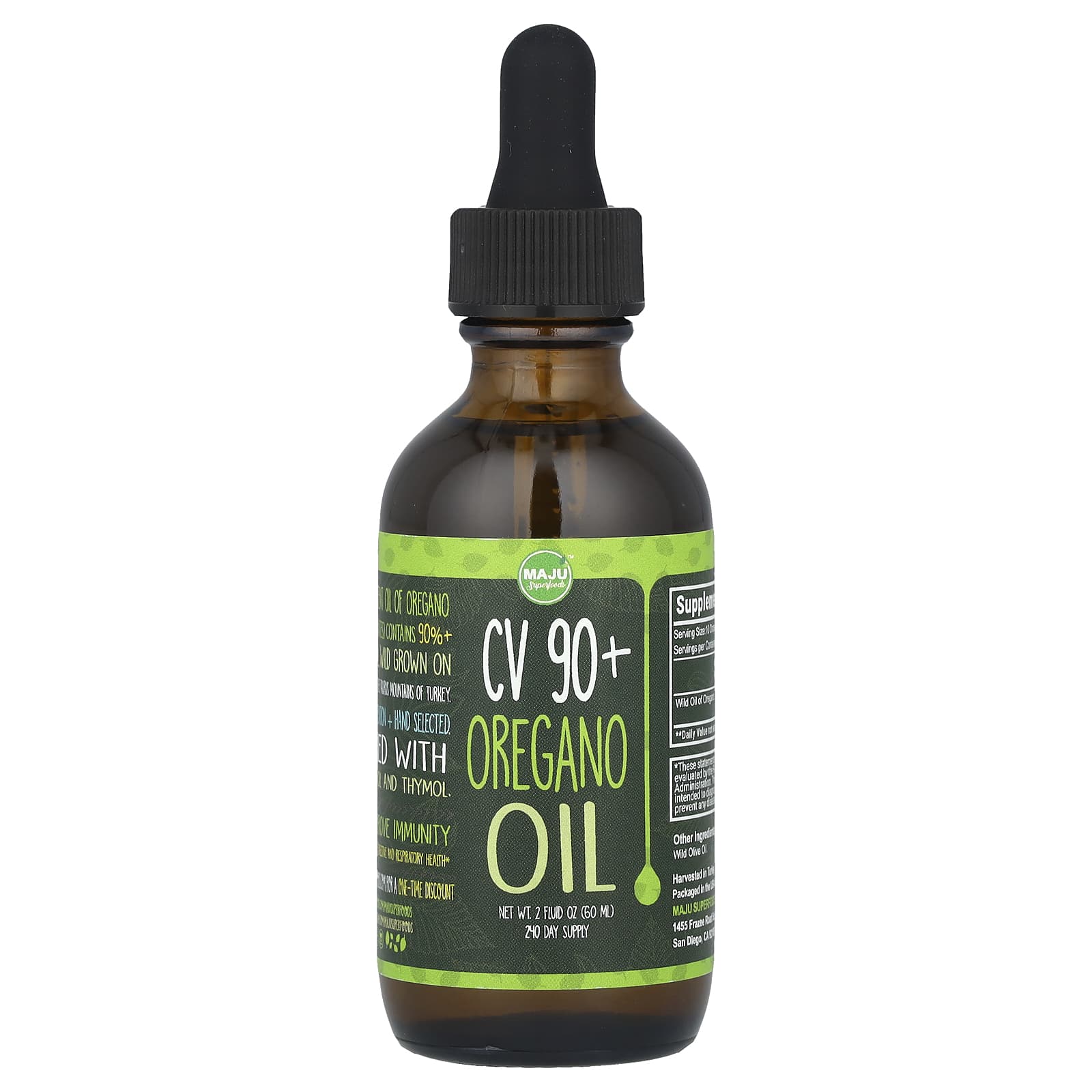 *Some information on the Maju Superfoods, CV 90+ Oregano Oil, 2 fl oz (60 ml)label may be missing, or it may have been written incorrectly. We work hard to keep the information accurate & up to date. Please let us know if you discover any errors.