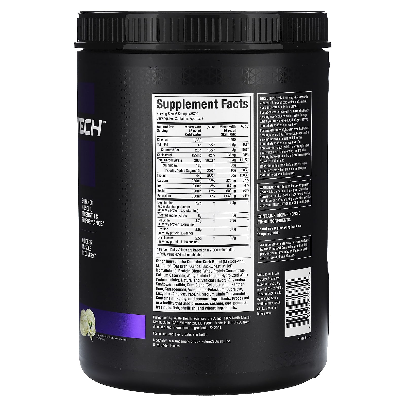 *Some information on the MuscleTech, 100% Mass Gainer™, Vanilla Milkshake, 5.15 lbs (2.33 kg)label may be missing, or it may have been written incorrectly. We work hard to keep the information accurate & up to date. Please let us know if you discover any errors.