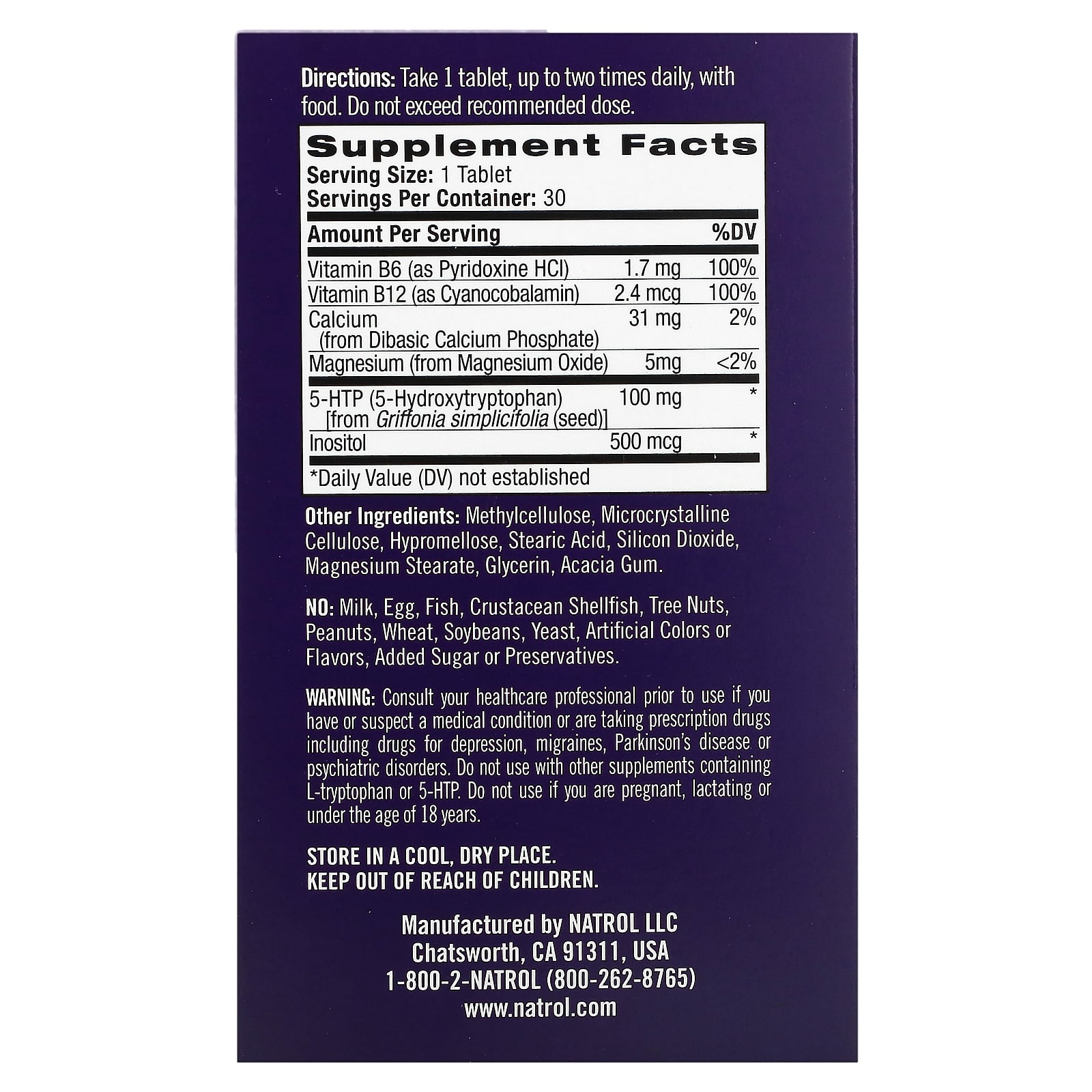 *Some information on the Natrol, Daily Stress Relief, Time Release, 30 Tabletslabel may be missing, or it may have been written incorrectly. We work hard to keep the information accurate & up to date. Please let us know if you discover any errors.