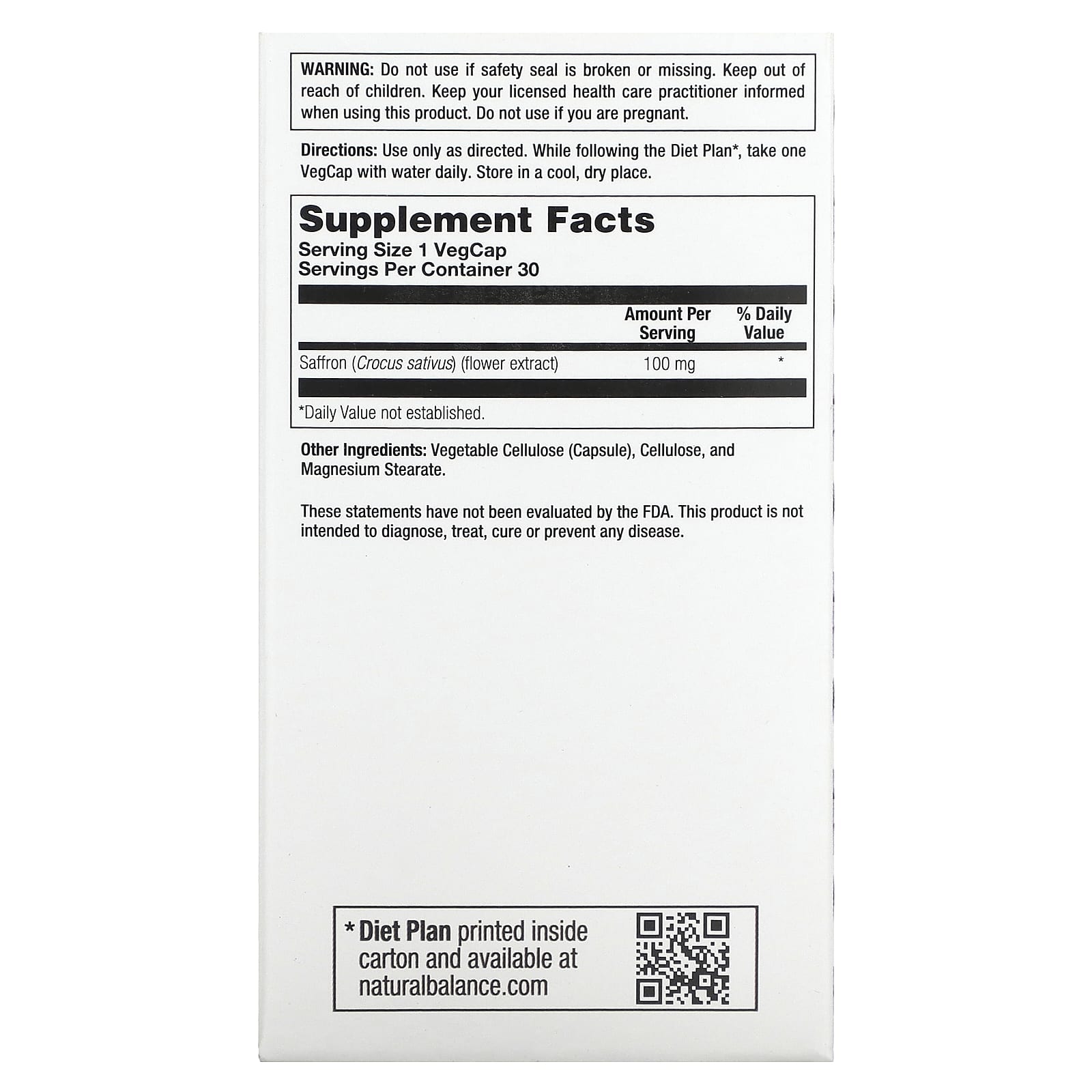 *Some information on the Natural Balance, Saffron Extract, Maximum Strength, 100 mg, 30 VegCapslabel may be missing, or it may have been written incorrectly. We work hard to keep the information accurate & up to date. Please let us know if you discover any errors.