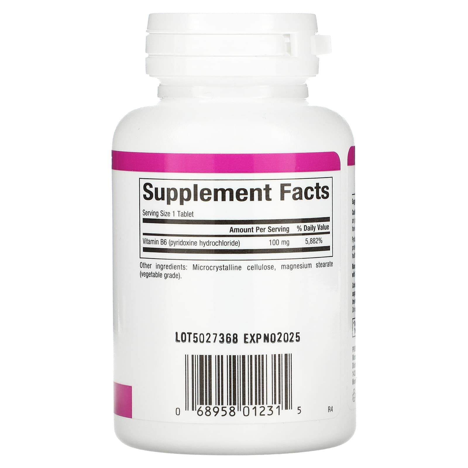 | Vitamin B6 | $100 mg (pyridoxine hydrochloride) | 25 mg (as Pyridoxine HCl) | 200 mg (as Pyridoxine HCl) | 100 mg (as Pyridoxine HCl) |