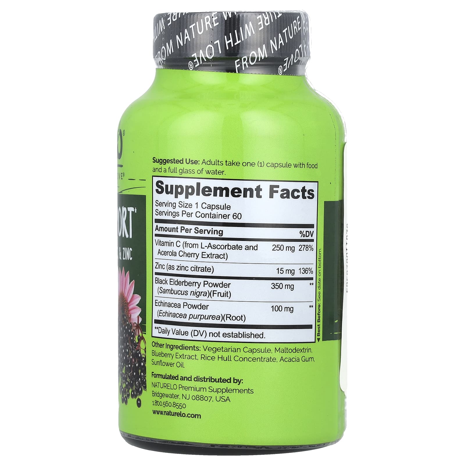 *Some information on the NATURELO, Immune Support with Elderberry, Vitamin C & Zinc plus Echinacea, 60 Vegetarian Capsuleslabel may be missing, or it may have been written incorrectly. We work hard to keep the information accurate & up to date. Please let us know if you discover any errors.