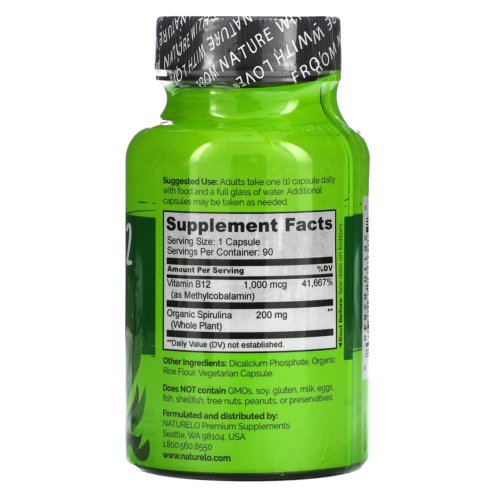 NATURELO, Vegan B12 Infused with Spirulina, 90 Easy Swallow CapsulesSupplement Rating