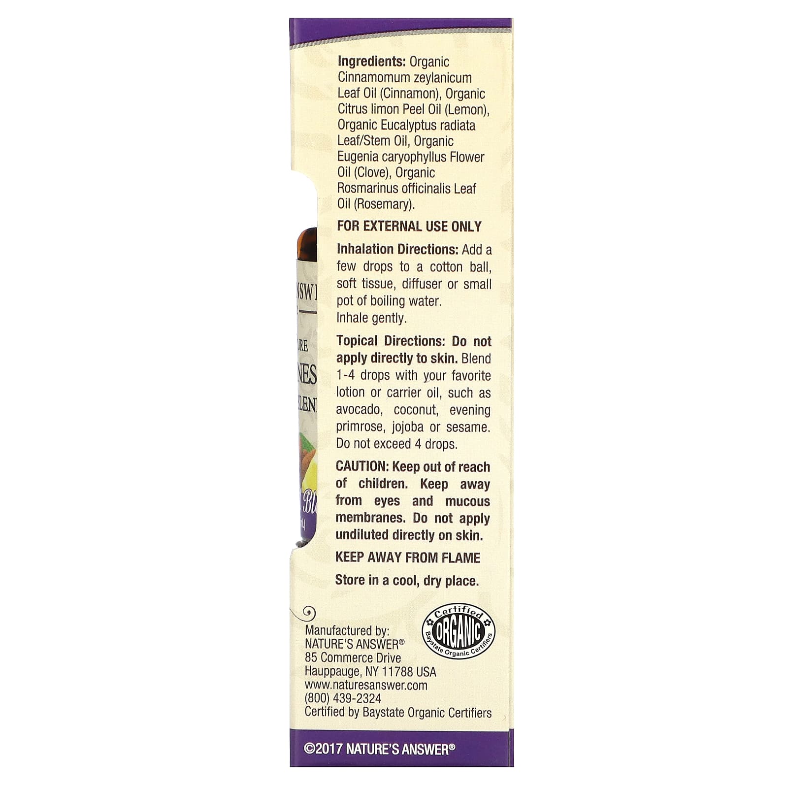*Some information on the Nature's Answer, 100% Pure Organic Essential Oil Blend, Thrones, 0.5 fl oz (15 ml)label may be missing, or it may have been written incorrectly. We work hard to keep the information accurate & up to date. Please let us know if you discover any errors.
