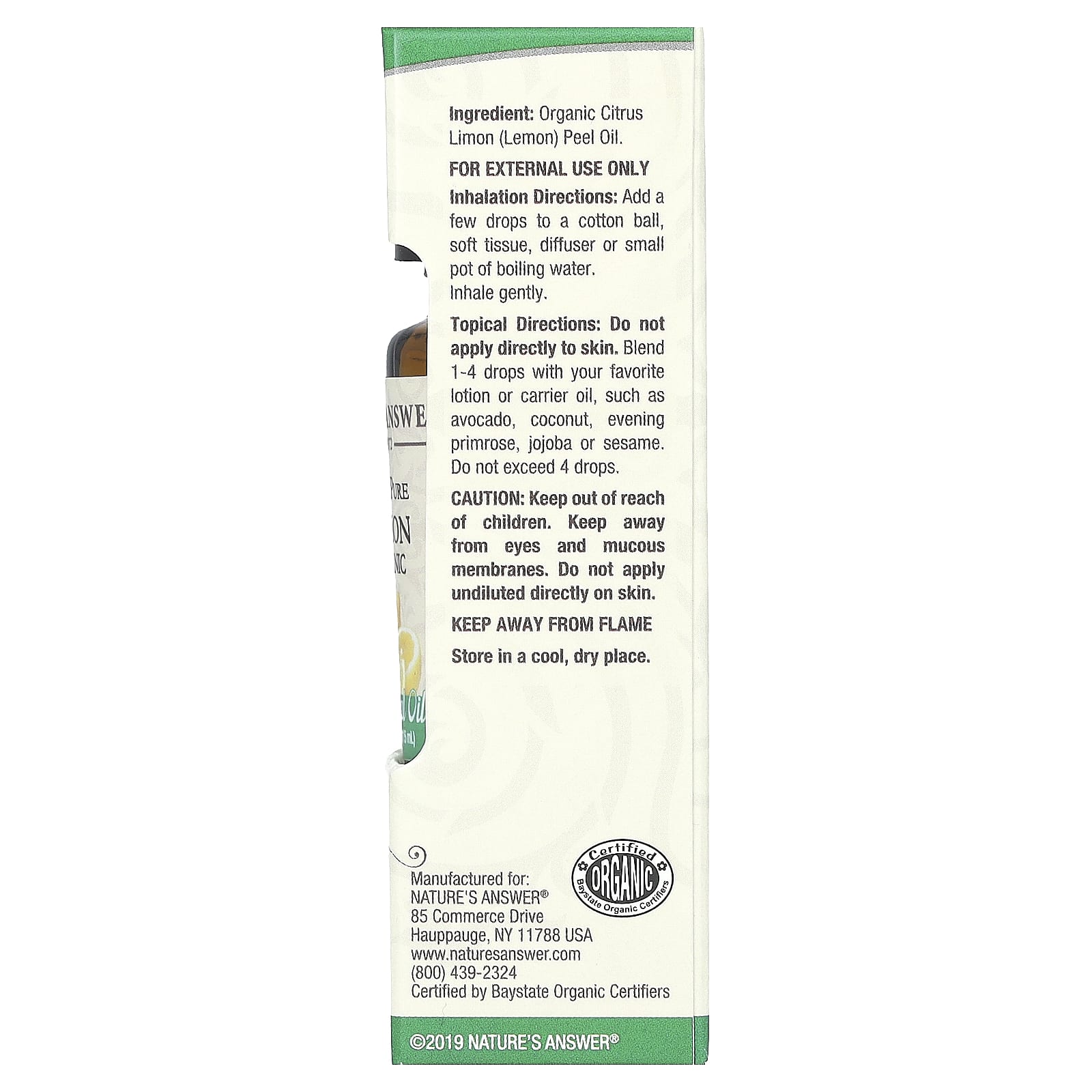 *Some information on the Nature's Answer, 100% Pure Organic Essential Oil, Lemon, 0.5 fl oz (15 ml)label may be missing, or it may have been written incorrectly. We work hard to keep the information accurate & up to date. Please let us know if you discover any errors.