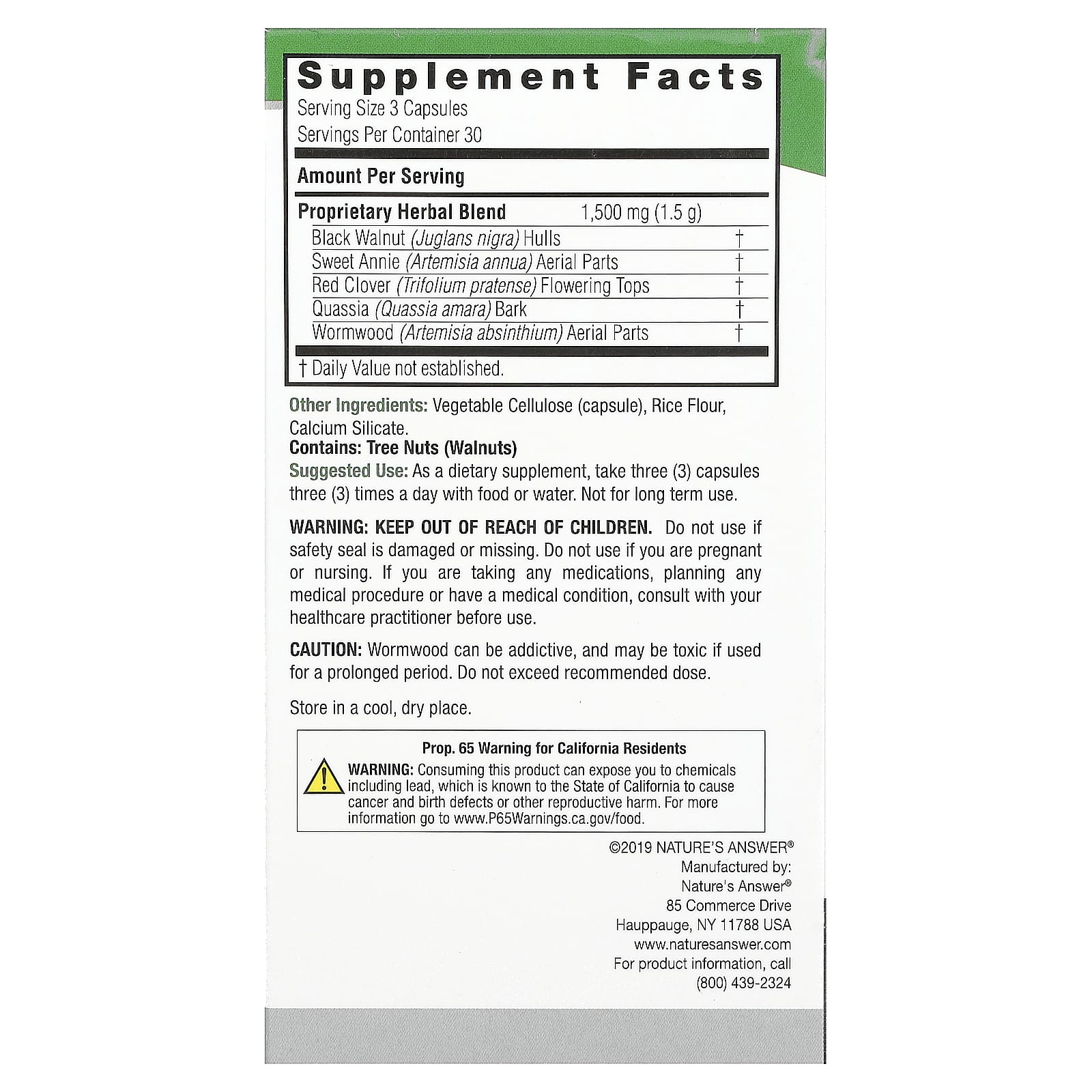 *Some information on the Nature's Answer, Black Walnut, 1,500 mg, 90 Vegetarian Capsules (500 mg per Capsule)label may be missing, or it may have been written incorrectly. We work hard to keep the information accurate & up to date. Please let us know if you discover any errors.