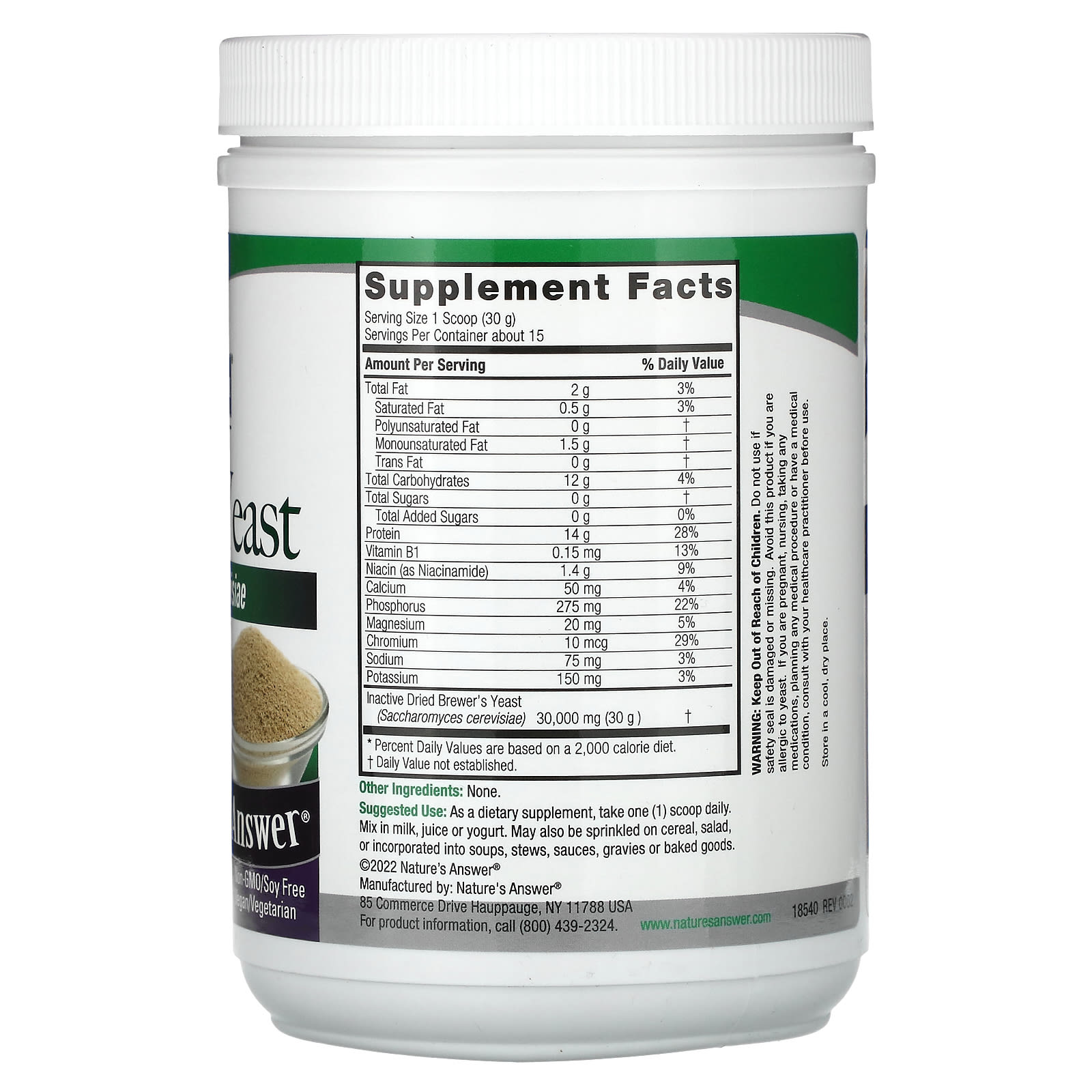 *Some information on the Nature's Answer, Brewer's Yeast , 16 oz (454 g)label may be missing, or it may have been written incorrectly. We work hard to keep the information accurate & up to date. Please let us know if you discover any errors.