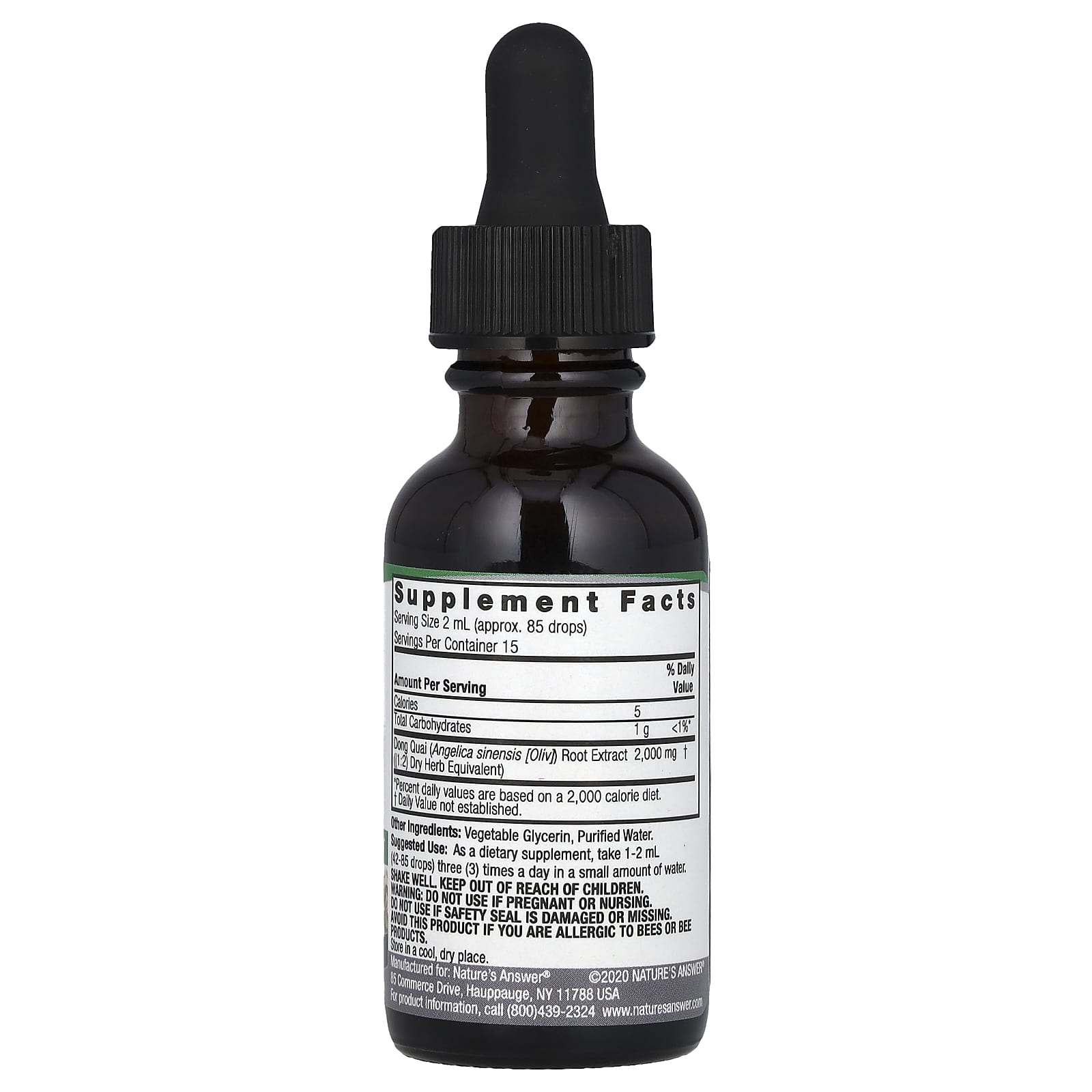 *Some information on the Nature's Answer, Dong Quai Root, Fluid Extract, Alcohol Free, 2,000 mg, 1 fl oz (30 ml)label may be missing, or it may have been written incorrectly. We work hard to keep the information accurate & up to date. Please let us know if you discover any errors.