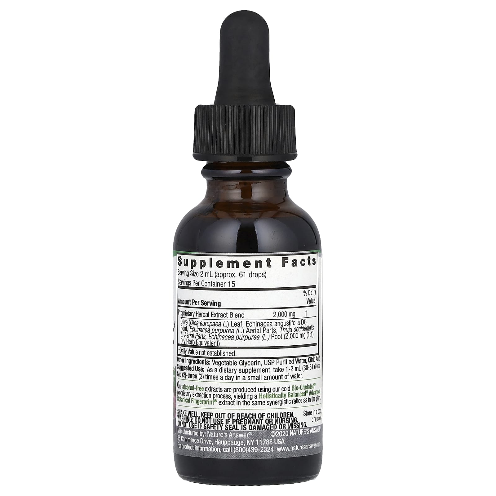 *Some information on the Nature's Answer, Immune Boost Herbal Blend, Alcohol-Free, 2,000 mg , 1 fl oz (30 ml)label may be missing, or it may have been written incorrectly. We work hard to keep the information accurate & up to date. Please let us know if you discover any errors.