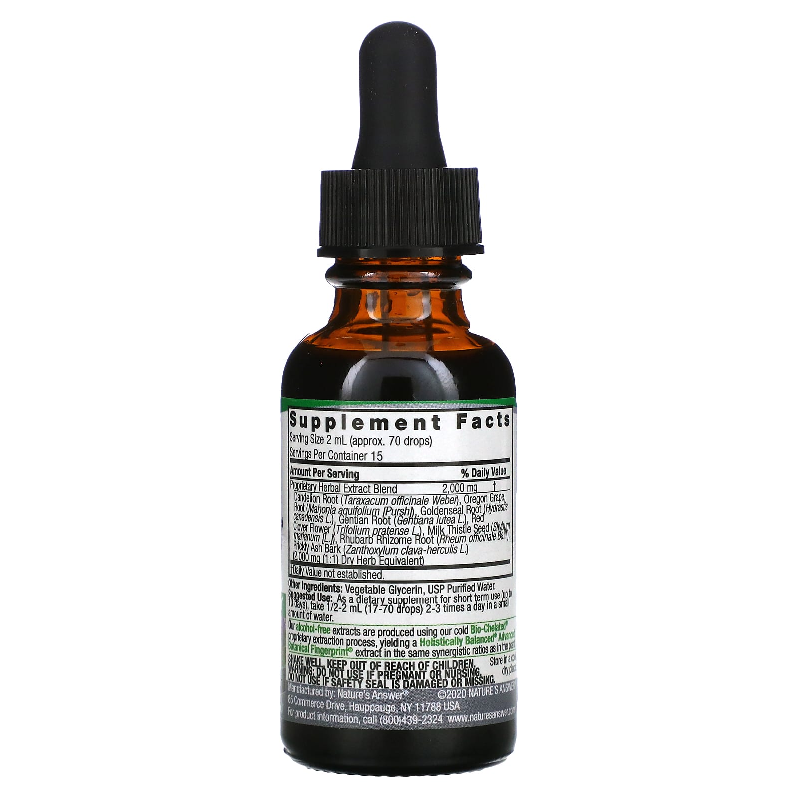 *Some information on the Nature's Answer, Liver Support Herbal Blend, Fluid Extract, Alcohol-Free, 2,000 mg, 1 fl oz (30 ml)label may be missing, or it may have been written incorrectly. We work hard to keep the information accurate & up to date. Please let us know if you discover any errors.