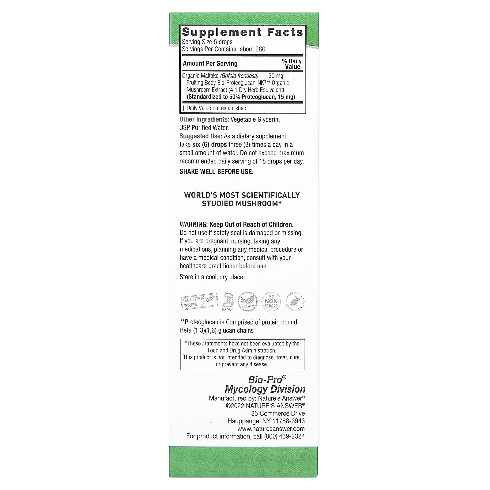 *Some information on the Nature's Answer, Maitake Bio-Beta-Glucan, Alcohol-Free, 30 mg, 2 fl oz (60 ml)label may be missing, or it may have been written incorrectly. We work hard to keep the information accurate & up to date. Please let us know if you discover any errors.