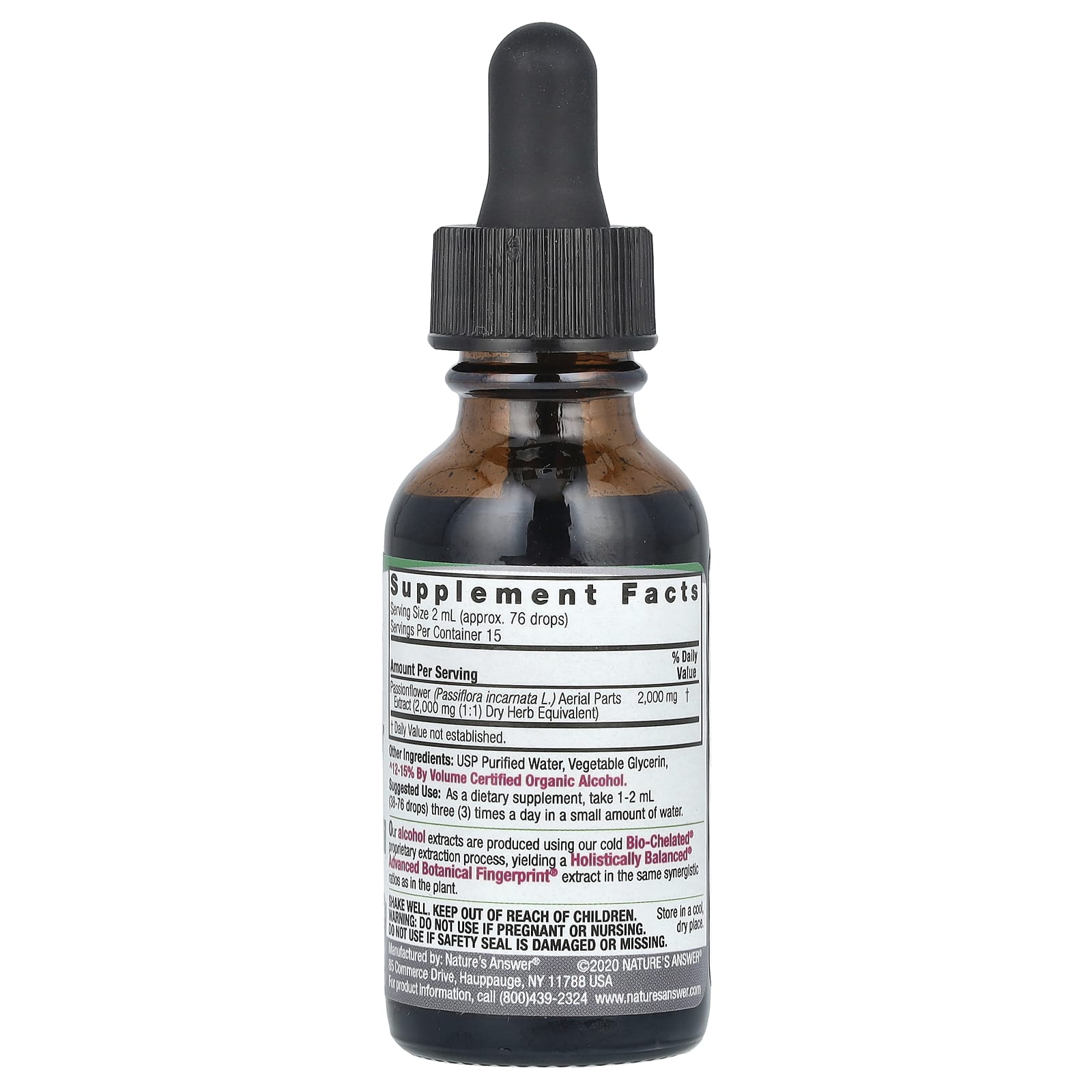 *Some information on the Nature's Answer, Passionflower Aerial Parts, Fluid Extract, 2,000 mg, 1 fl oz (30 ml)label may be missing, or it may have been written incorrectly. We work hard to keep the information accurate & up to date. Please let us know if you discover any errors.