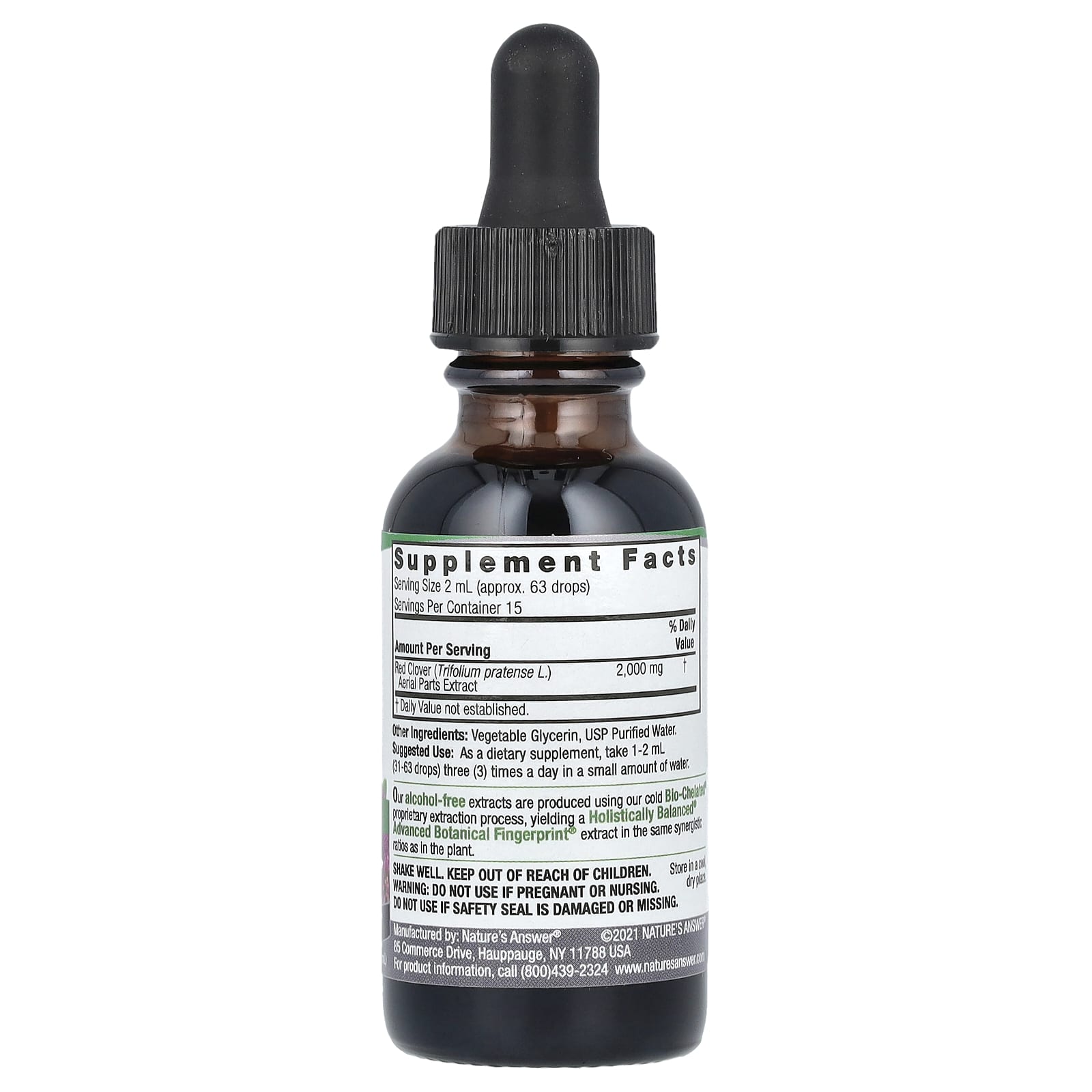 *Some information on the Nature's Answer, Red Clover Aerial Parts, Fluid Extract, Alcohol-Free, 2,000 mg, 1 fl oz (30 ml)label may be missing, or it may have been written incorrectly. We work hard to keep the information accurate & up to date. Please let us know if you discover any errors.