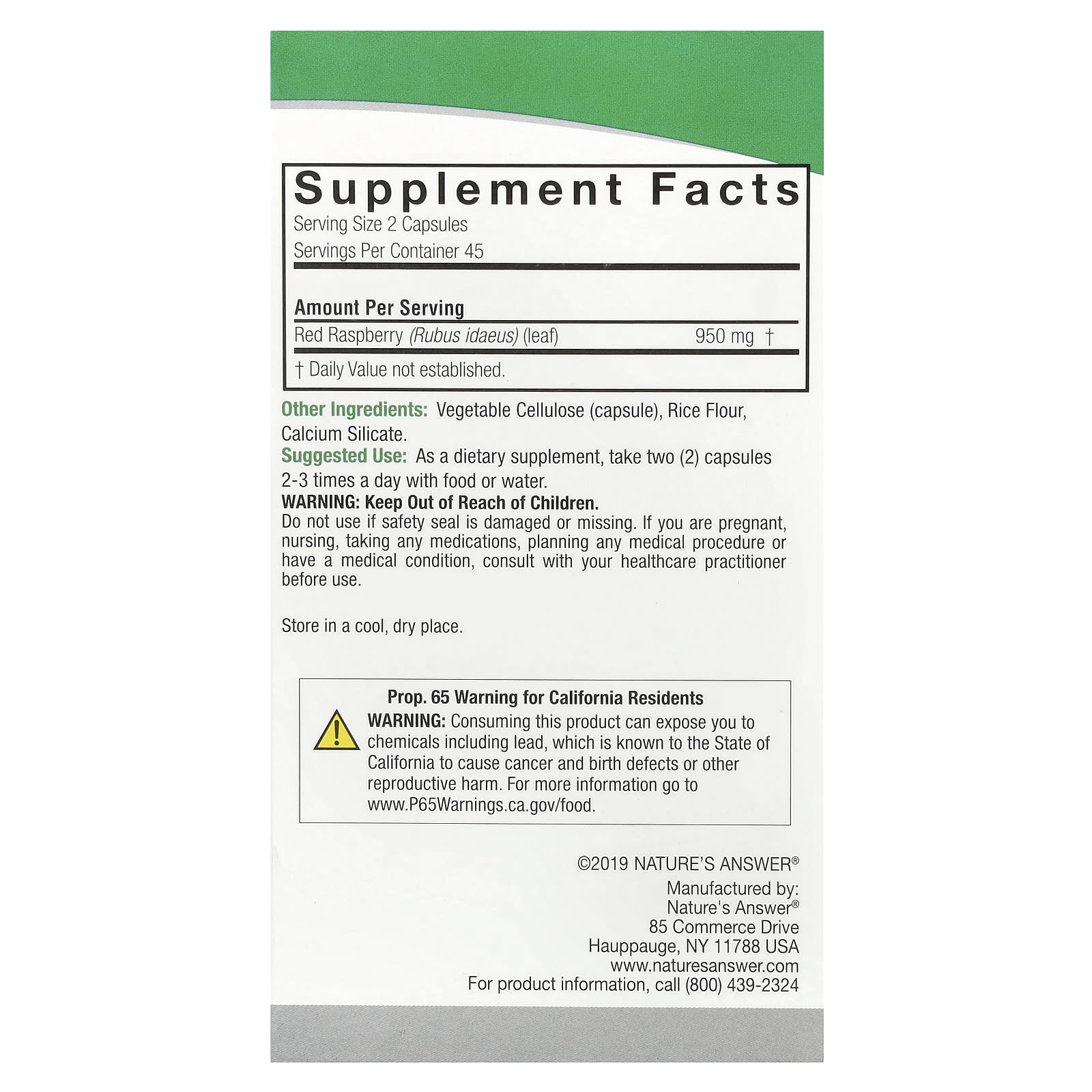 Nature's Answer, Red Raspberry, 950 mg, 90 Vegetarian Capsules (475 mg Per Capsule)Supplement Rating