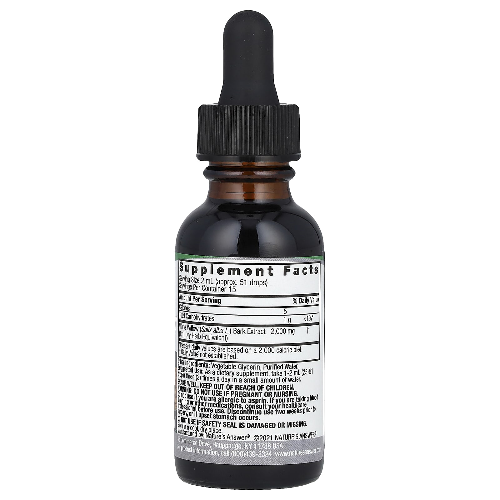 Nature's Answer, White Willow Extract, Alcohol-Free, 2,000 mg, 1 fl oz (30 ml)Supplement Rating