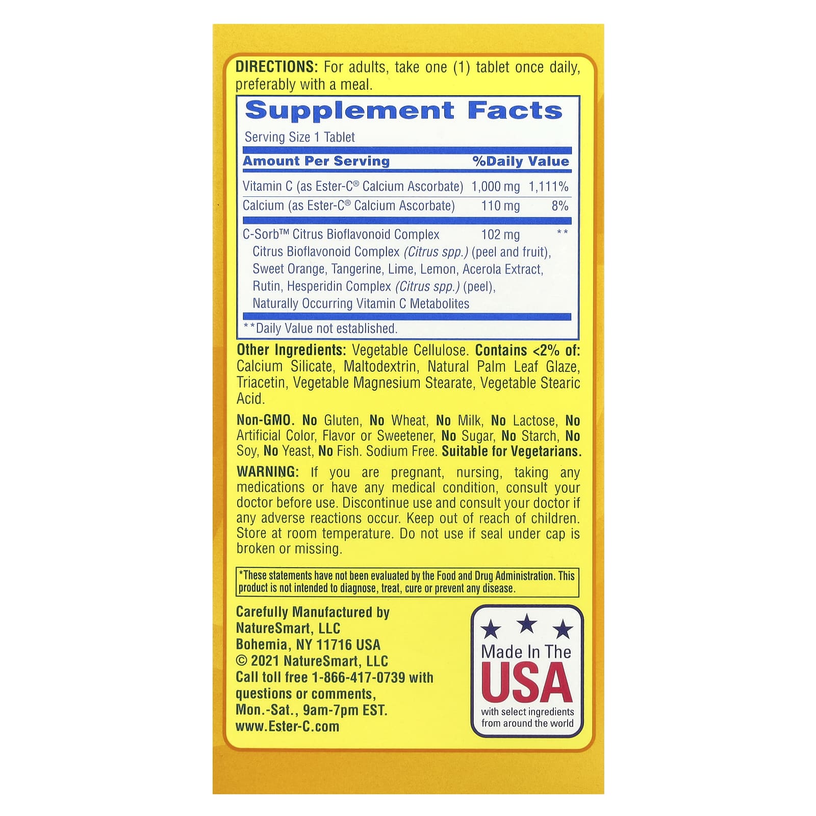 *Some information on the Nature's Bounty, Ester-C®, Maximum Strength, 1,000 mg, 120 Vegetarian Coated Tabletslabel may be missing, or it may have been written incorrectly. We work hard to keep the information accurate & up to date. Please let us know if you discover any errors.
