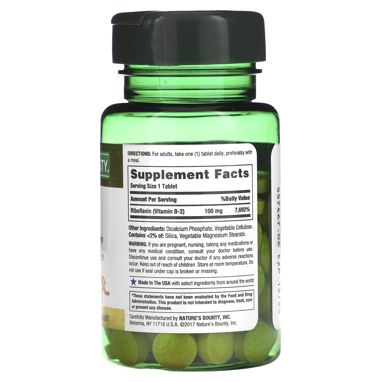 *Some information on the Nature's Bounty, Vitamin B-2, 100 mg, 100 Coated Tabletslabel may be missing, or it may have been written incorrectly. We work hard to keep the information accurate & up to date. Please let us know if you discover any errors.