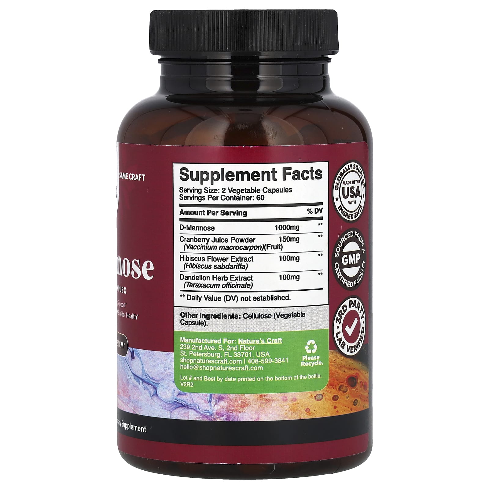 *Some information on the Nature's Craft, D-Mannose, 120 Capsuleslabel may be missing, or it may have been written incorrectly. We work hard to keep the information accurate & up to date. Please let us know if you discover any errors.