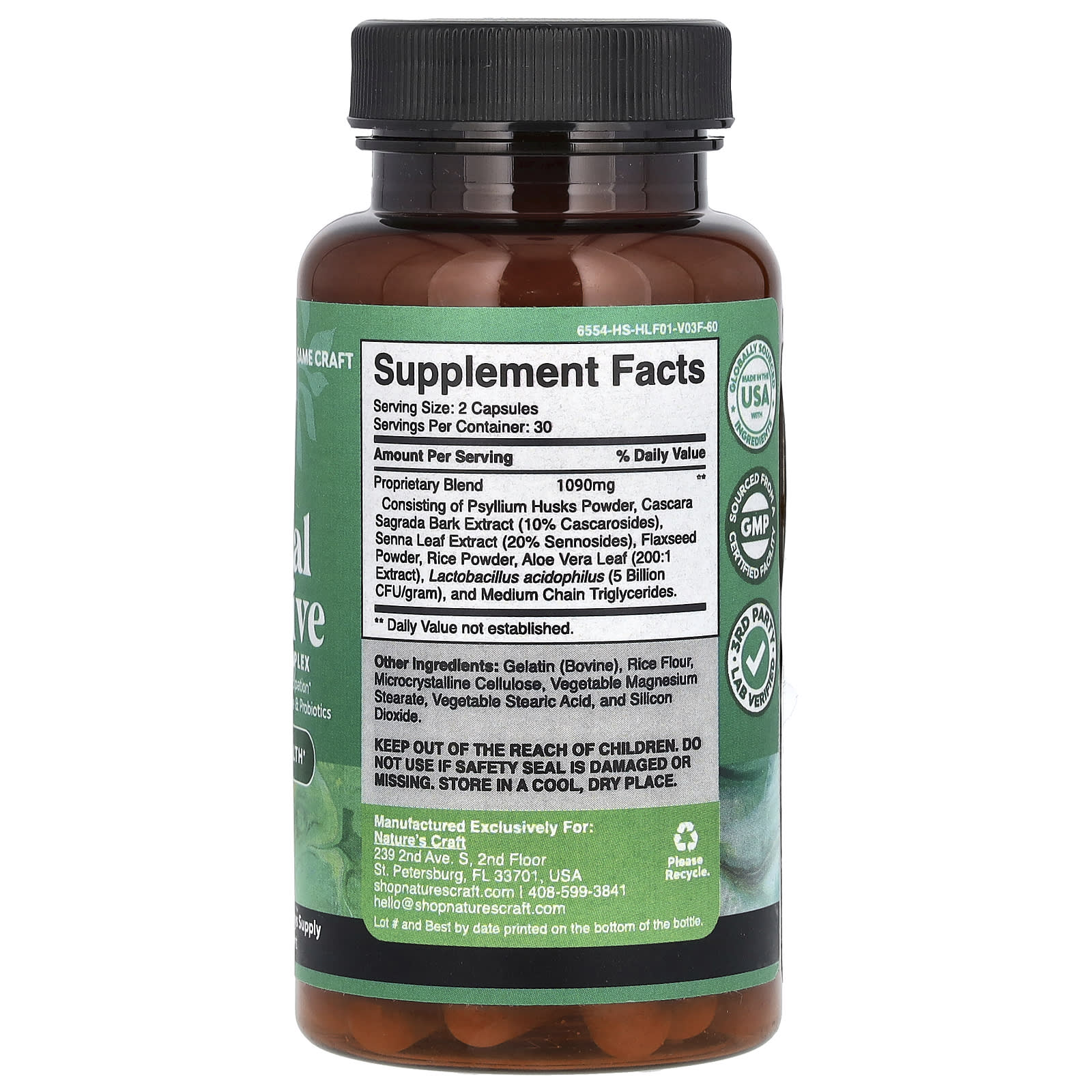 *Some information on the Nature's Craft, Herbal Laxative, 60 Capsuleslabel may be missing, or it may have been written incorrectly. We work hard to keep the information accurate & up to date. Please let us know if you discover any errors.
