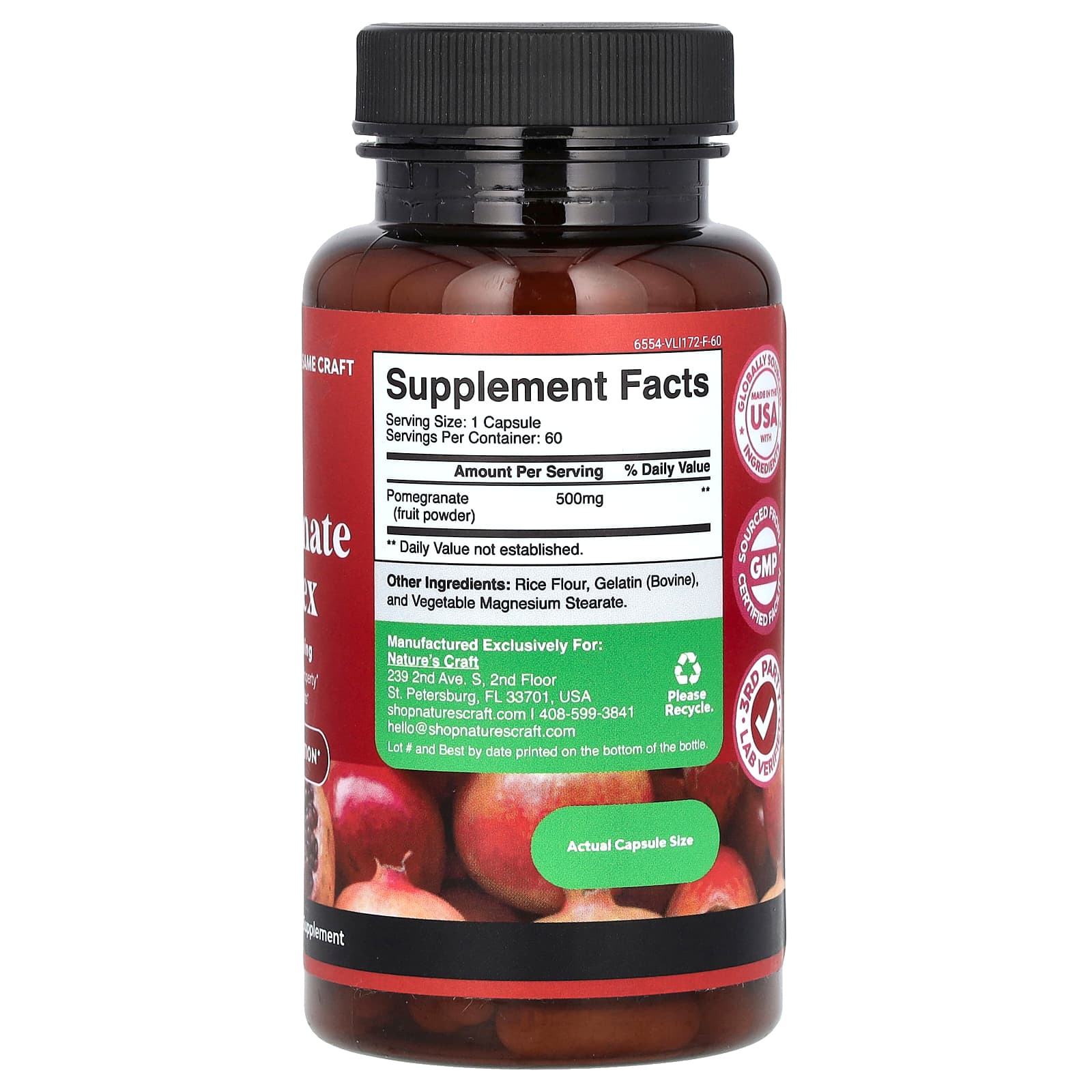 *Some information on the Nature's Craft, Pomegranate Complex , 500 mg, 60 Capsuleslabel may be missing, or it may have been written incorrectly. We work hard to keep the information accurate & up to date. Please let us know if you discover any errors.