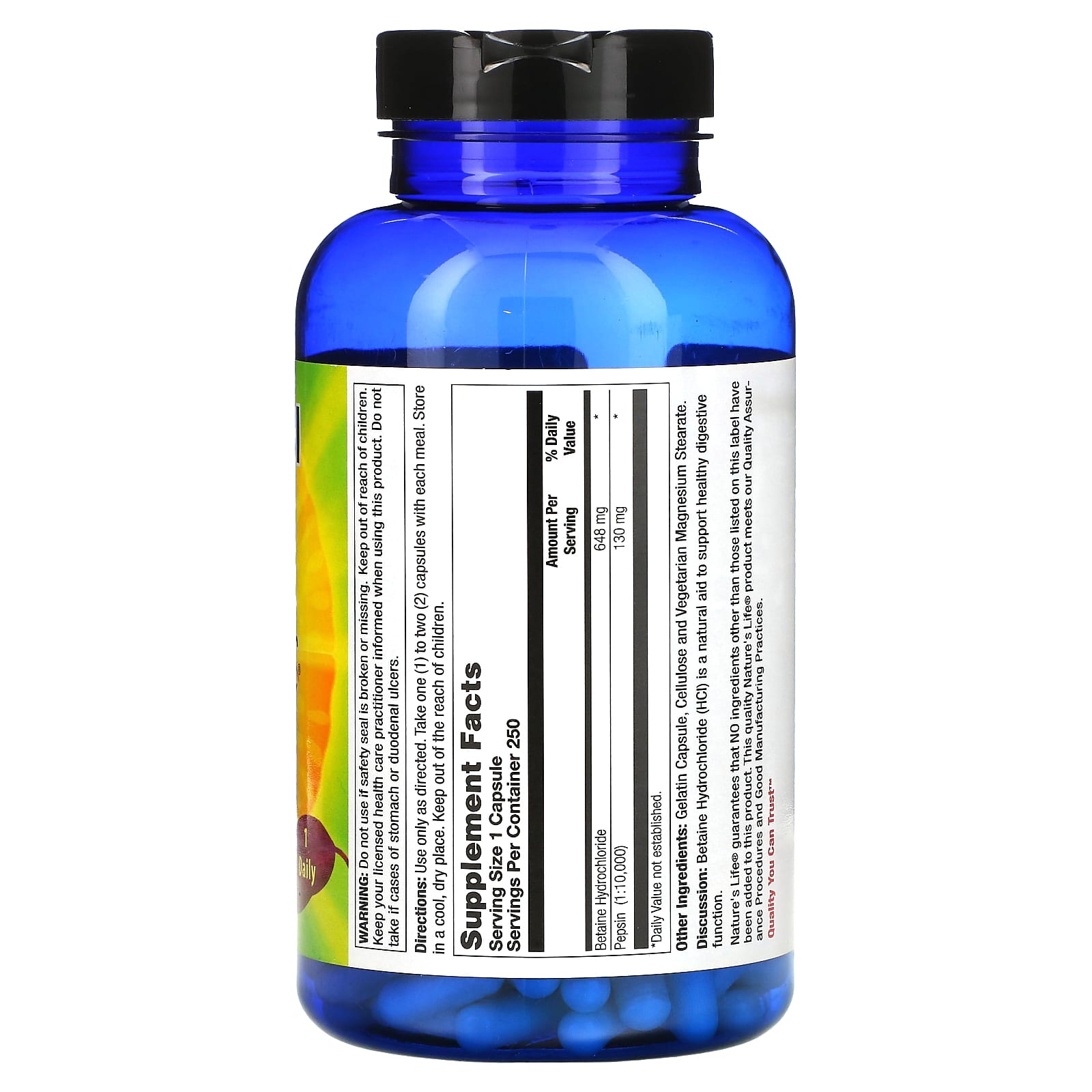 *Some information on the Nature's Life, Betaine HCl, 648 mg, 250 Capsuleslabel may be missing, or it may have been written incorrectly. We work hard to keep the information accurate & up to date. Please let us know if you discover any errors.