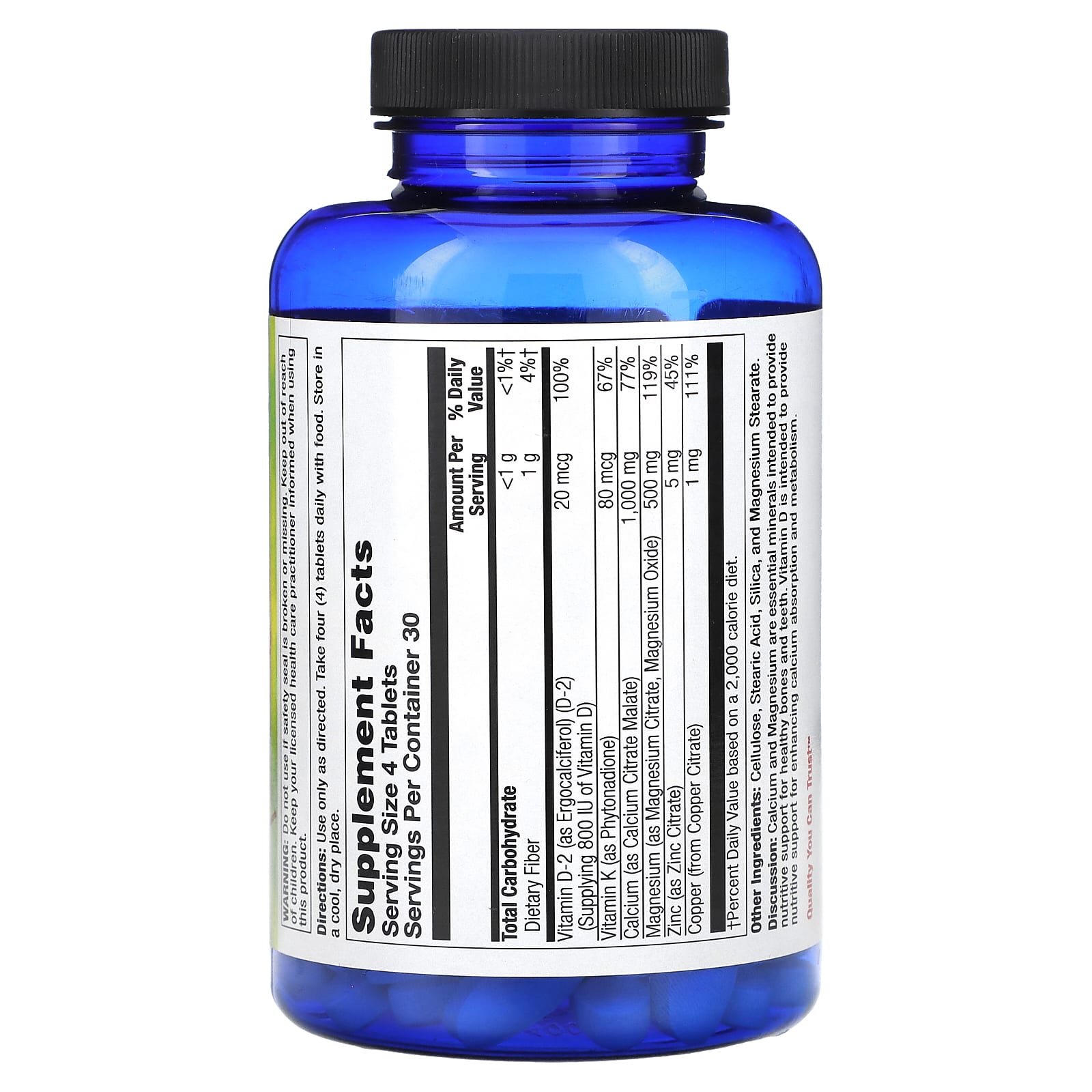 | Calcium | 1,000 mg (as Calcium citrate malate) | missing substance or information* | missing substance or information* | 1,000 mg (as calcium carbonate, malate, amino acid chelate, citrate) |