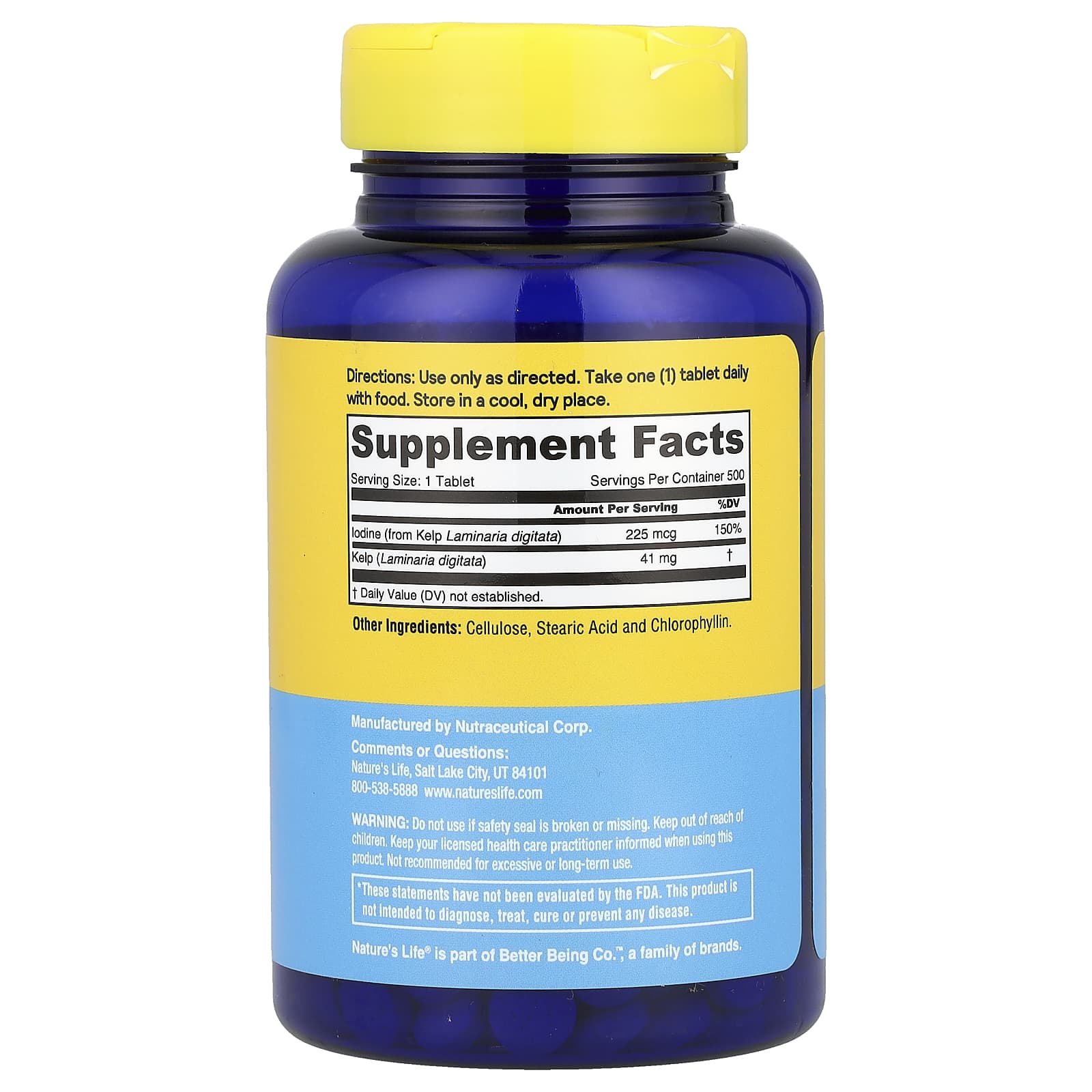 *Some information on the Nature's Life, Icelandic Kelp, 500 Tabletslabel may be missing, or it may have been written incorrectly. We work hard to keep the information accurate & up to date. Please let us know if you discover any errors.
