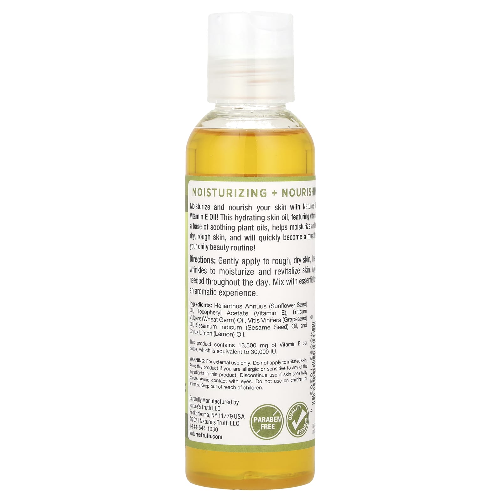 *Some information on the Nature's Truth, E-Oil, Lemon, 30,000 IU (13,500 mg), 4 fl oz (118 ml)label may be missing, or it may have been written incorrectly. We work hard to keep the information accurate & up to date. Please let us know if you discover any errors.