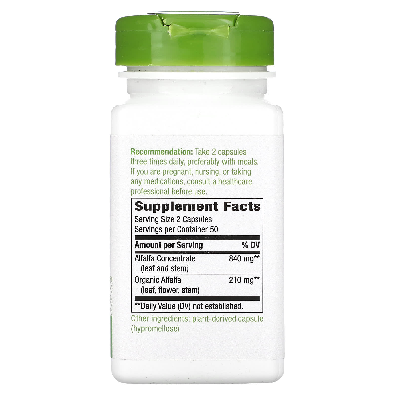 *Some information on the Nature's Way, Alfa-Max, Alfalfa Concentrate, 840 mg, 100 Vegan Capsules (420 mg per Capsule)label may be missing, or it may have been written incorrectly. We work hard to keep the information accurate & up to date. Please let us know if you discover any errors.