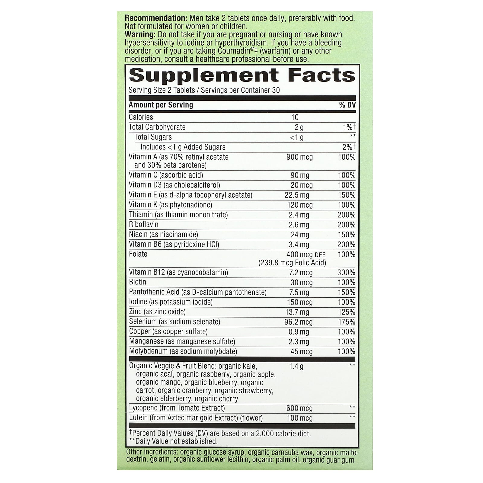 *Some information on the Nature's Way, Alive! Garden Goodness, Men's Multivitamin, 60 Tabletslabel may be missing, or it may have been written incorrectly. We work hard to keep the information accurate & up to date. Please let us know if you discover any errors.