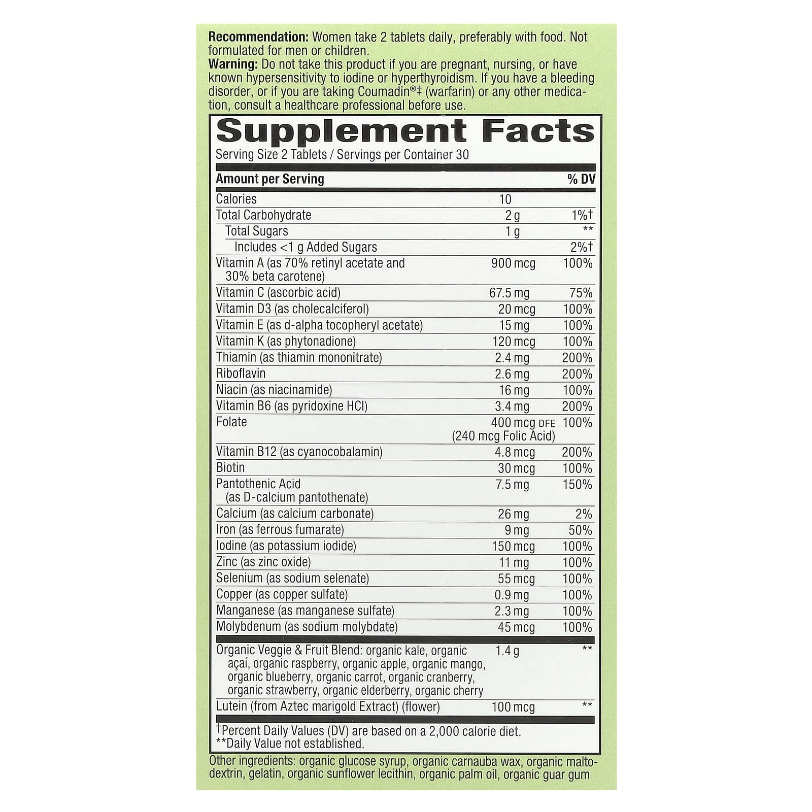 *Some information on the Nature's Way, Alive! Garden Goodness, Women's Multivitamin, 60 Tabletslabel may be missing, or it may have been written incorrectly. We work hard to keep the information accurate & up to date. Please let us know if you discover any errors.