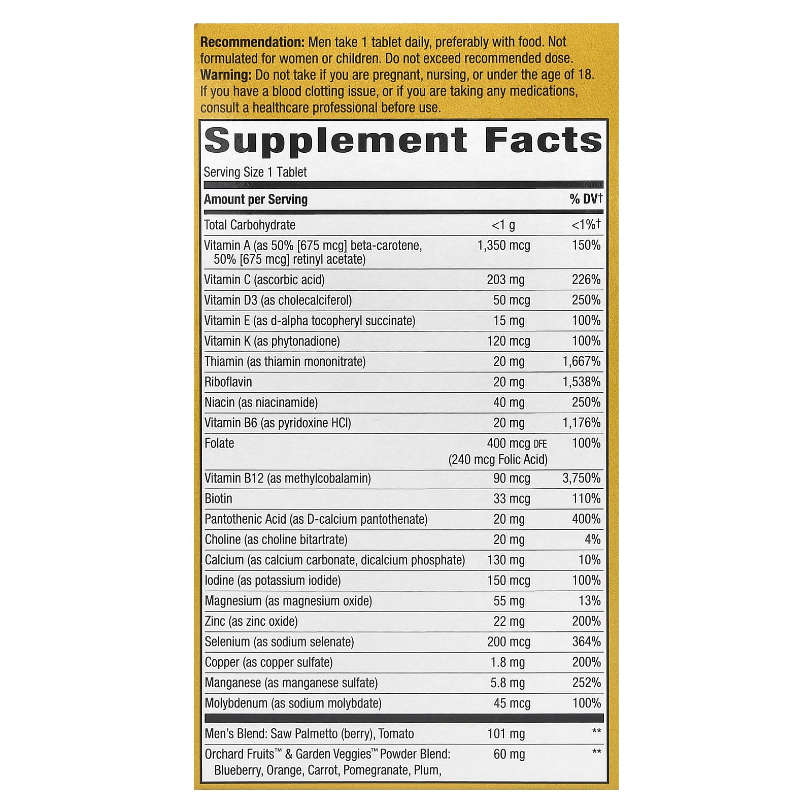 *Some information on the Nature's Way, Alive! Men's 50+ Ultra Multivitamin, 60 Tabletslabel may be missing, or it may have been written incorrectly. We work hard to keep the information accurate & up to date. Please let us know if you discover any errors.