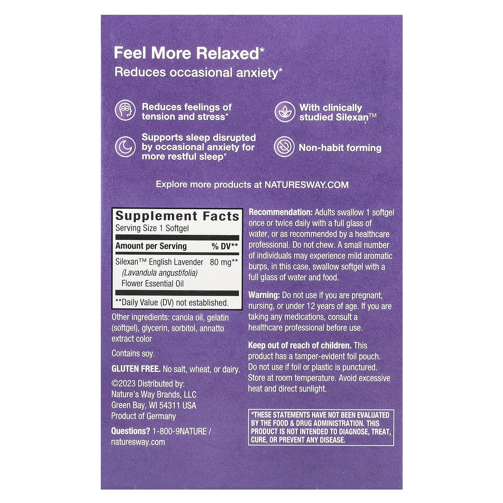 *Some information on the Nature's Way, CalmAid, Clinically Studied Lavender, 30 Softgelslabel may be missing, or it may have been written incorrectly. We work hard to keep the information accurate & up to date. Please let us know if you discover any errors.