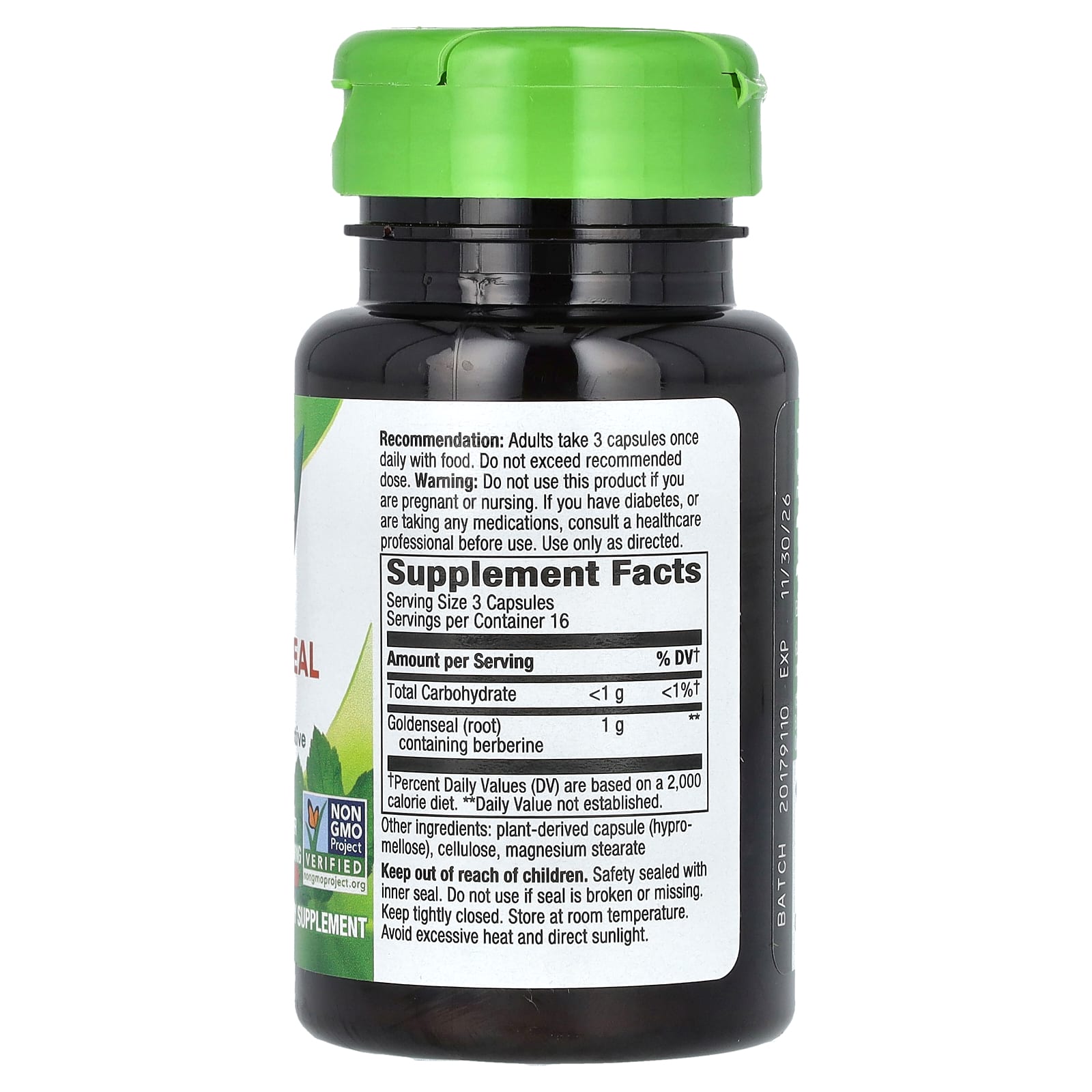 *Some information on the Nature's Way, Goldenseal Root, 1,000 mg, 50 Vegan Capsules (333 mg per Capsule)label may be missing, or it may have been written incorrectly. We work hard to keep the information accurate & up to date. Please let us know if you discover any errors.